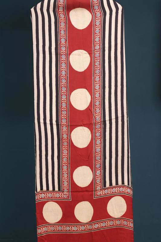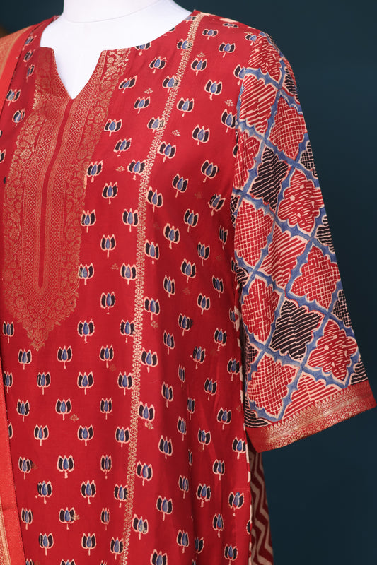 Handblock printed Ajrakh dola silk 2 piece suit (stitched)