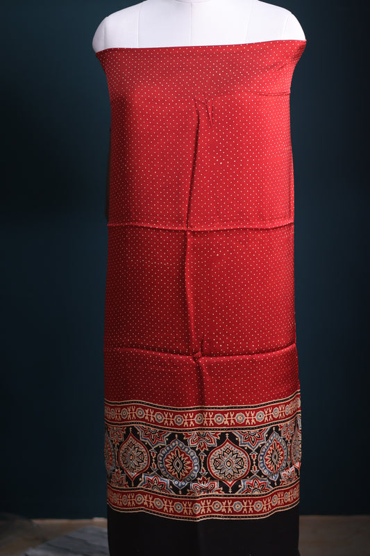 Red Handblock printed Ajrakh modal silk 2 piece suit set
