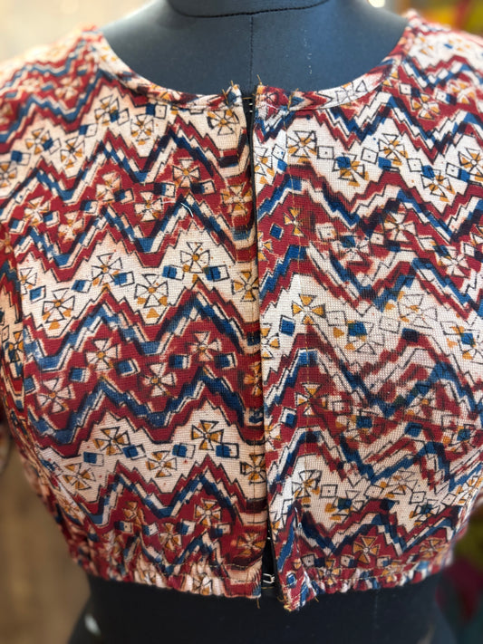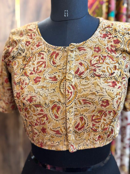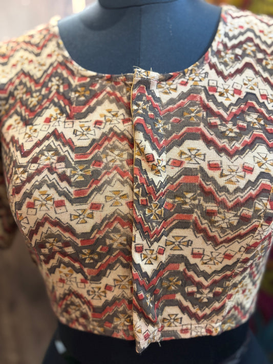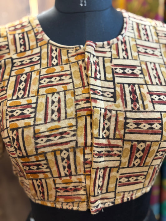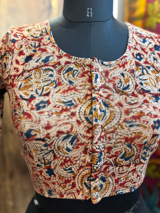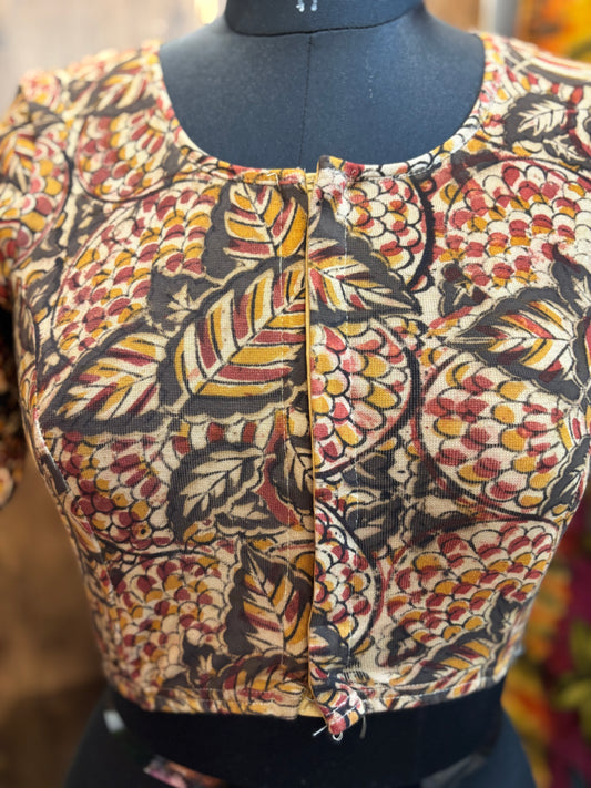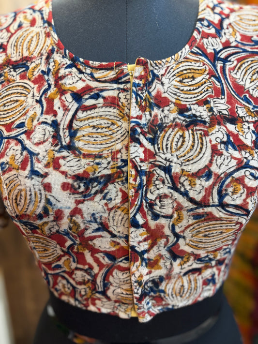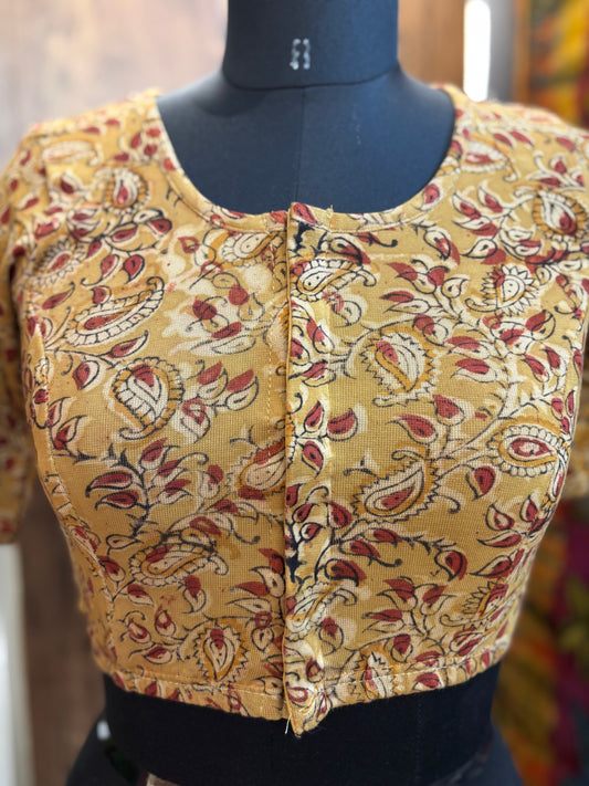 Stretchable Hand block printed kalamkari blouse