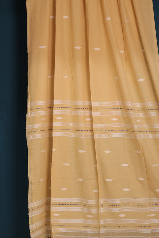 Sandal Pure Handwoven Malai Cotton Saree with Butta Weaving