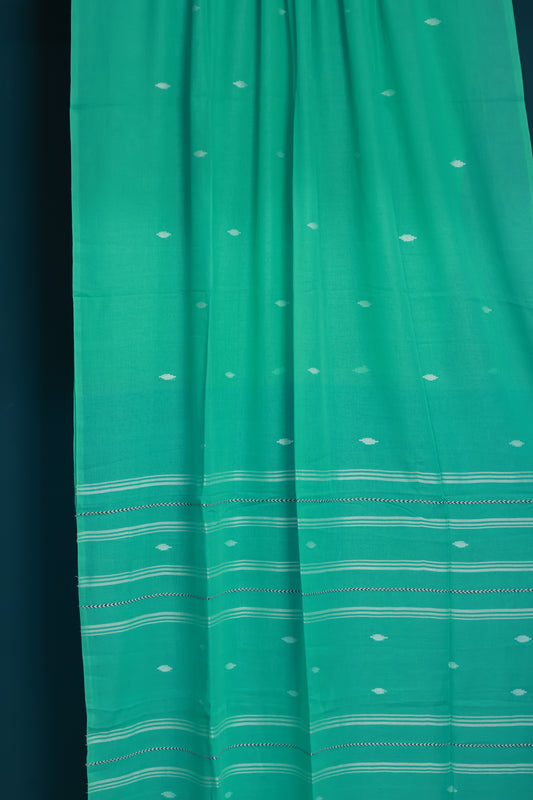 Sea green Pure Handwoven Malai Cotton Saree with Butta Weaving