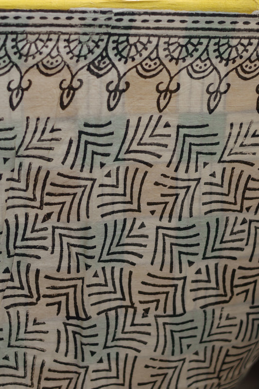 Sea green Bagru Handblock printed MulMul cotton saree
