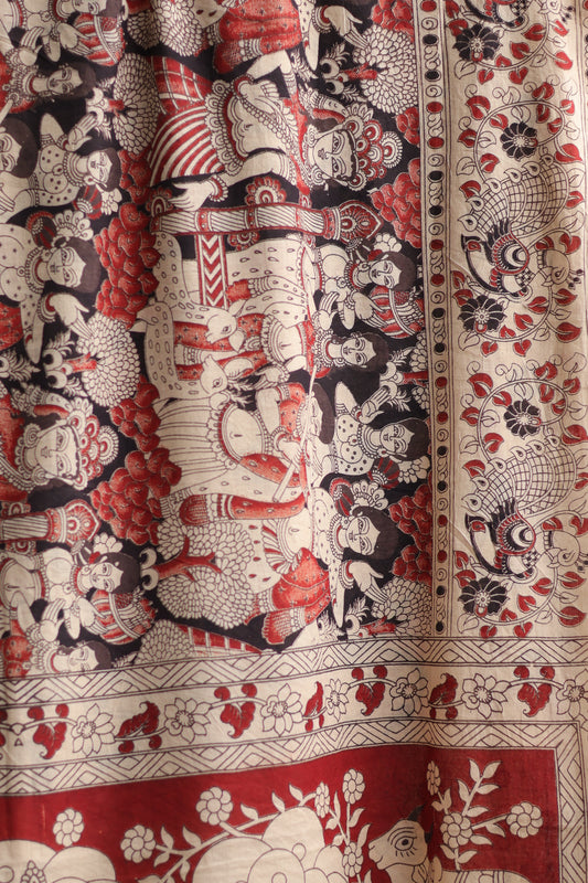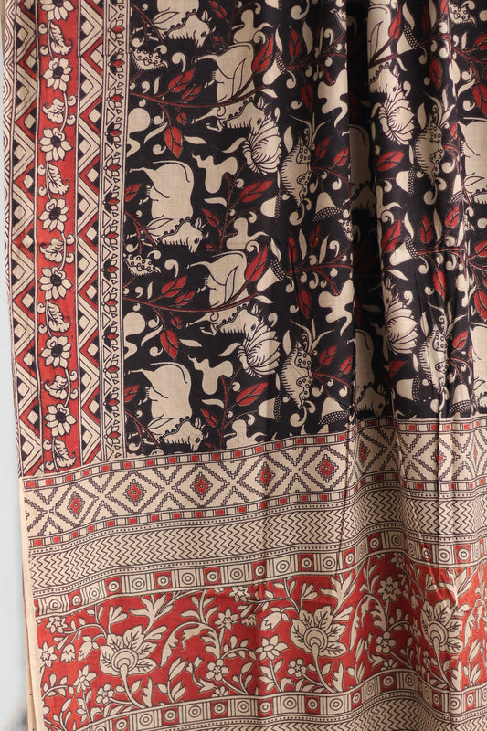 Black & Red Kuppadam Border Kalamkari Uppada Silk Saree