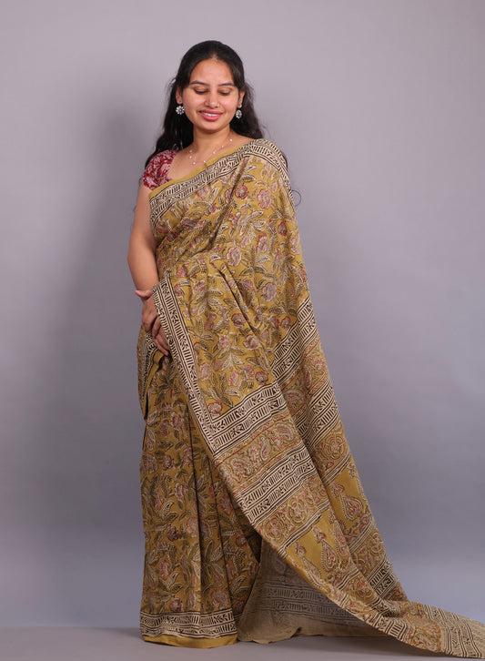 Hand Block Printed Kalamkari Cotton Saree