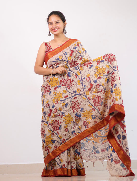 Gap Border Kalamkari dyeing premium Chennur silk saree