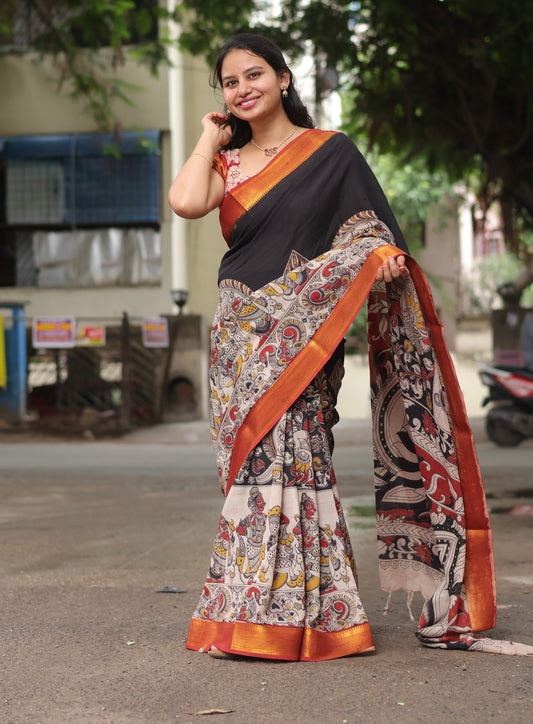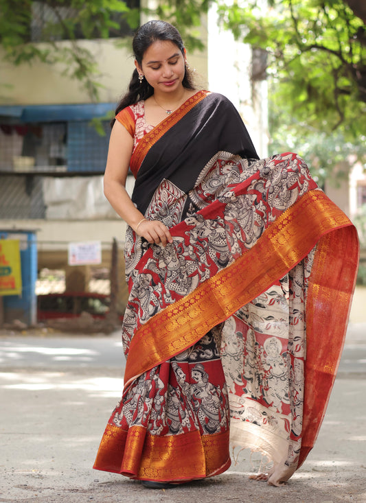 Black Kanchi Border Kalamkari Chennur Silk Saree