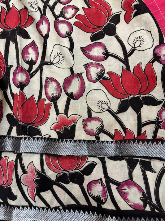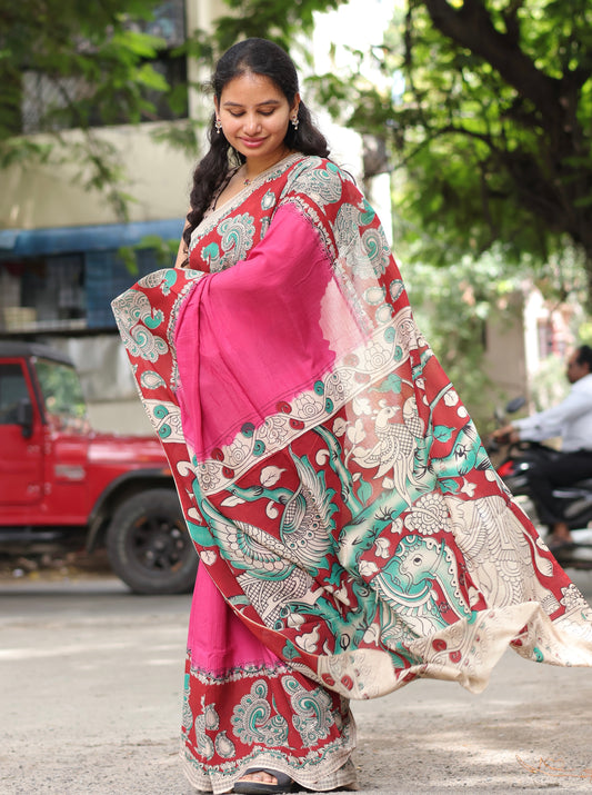 Pink & Red Kalamkari dyeing premium chennur silk saree