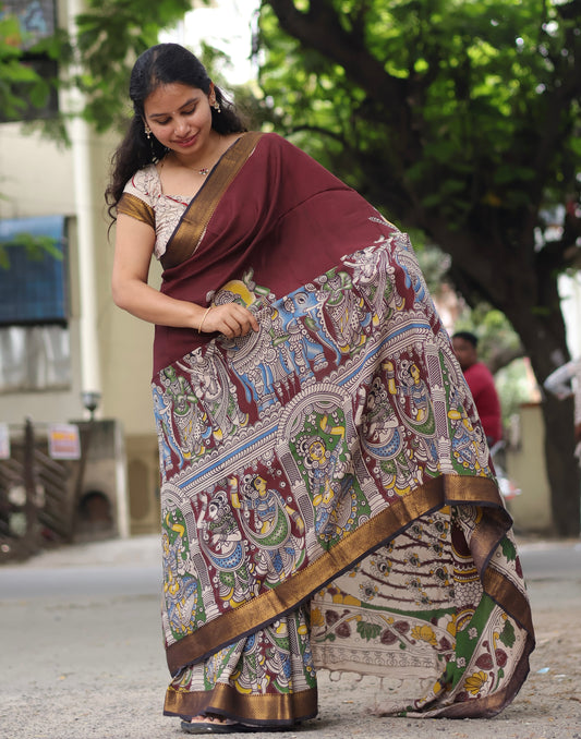 Cream Outline Kanchi border Kalamkari chennur silk saree