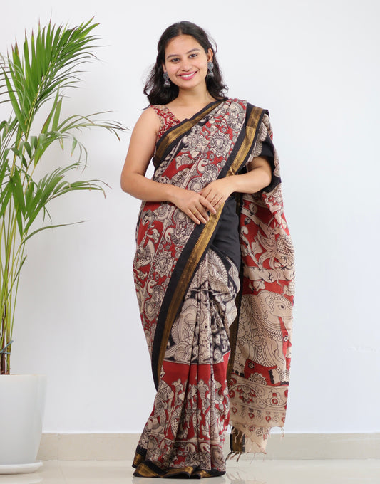 Black & Red Kuppadam Border Kalamkari Uppada Silk Saree