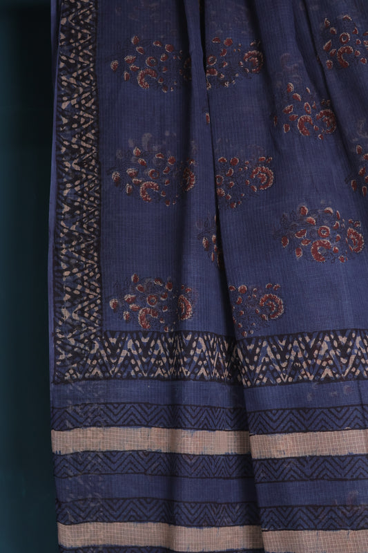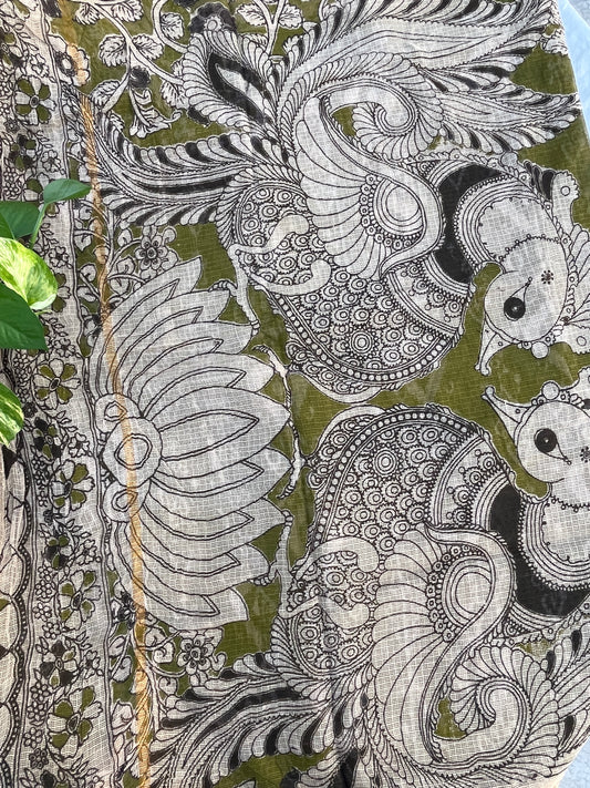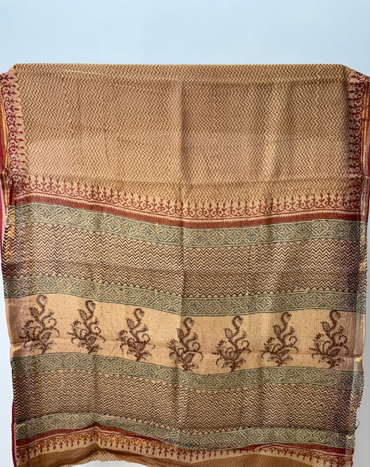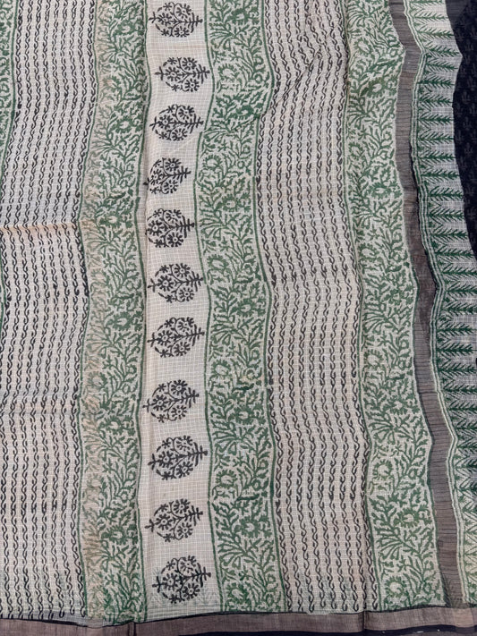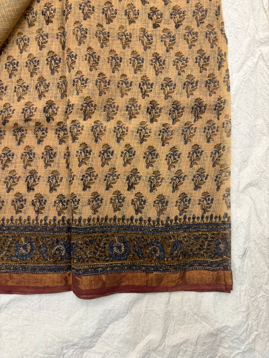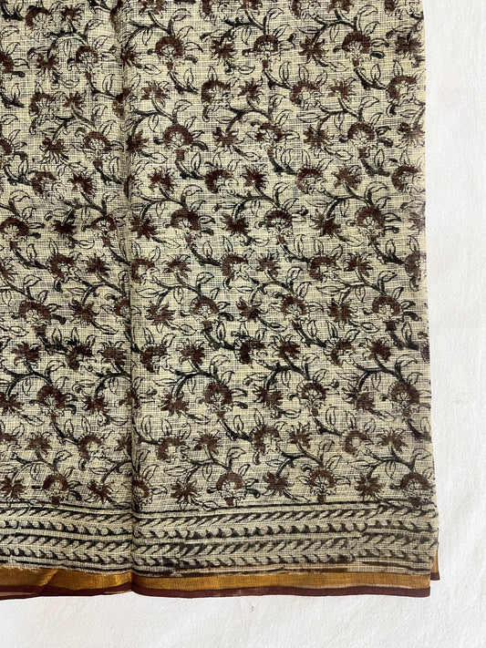 Cream Kalamkari Hand block printed Kota Doria Saree