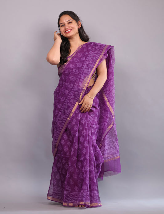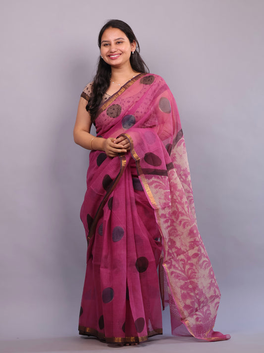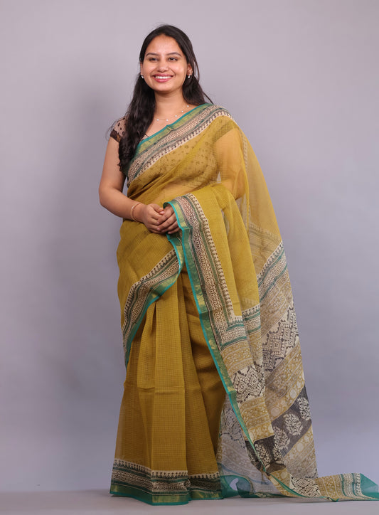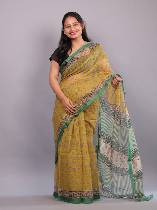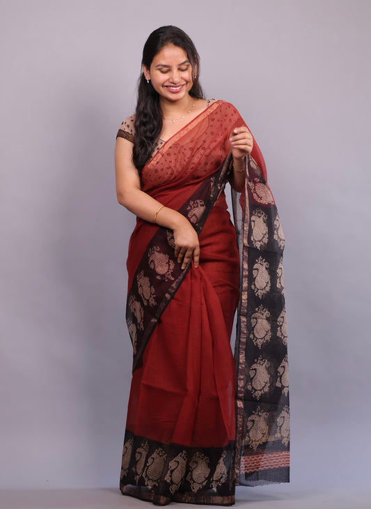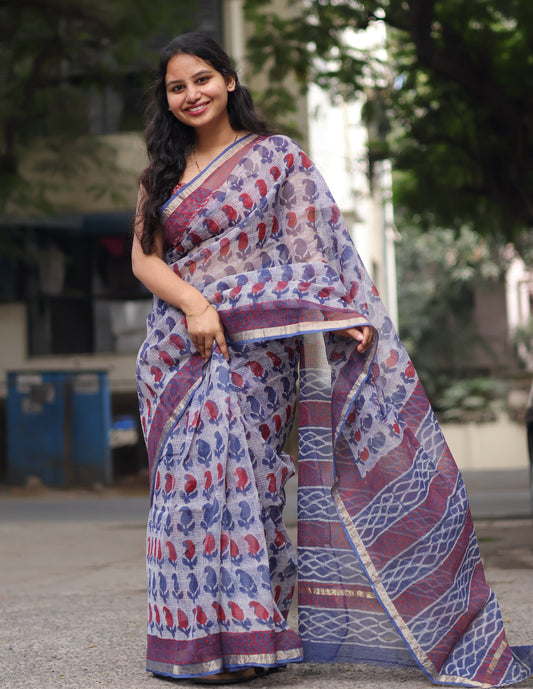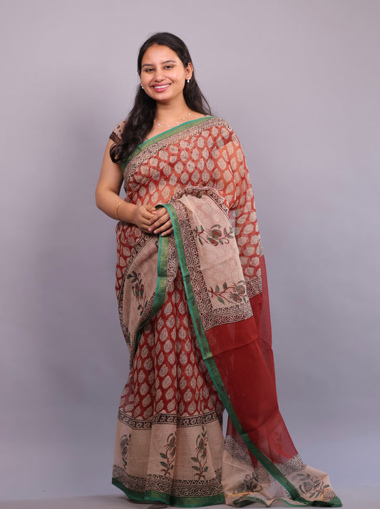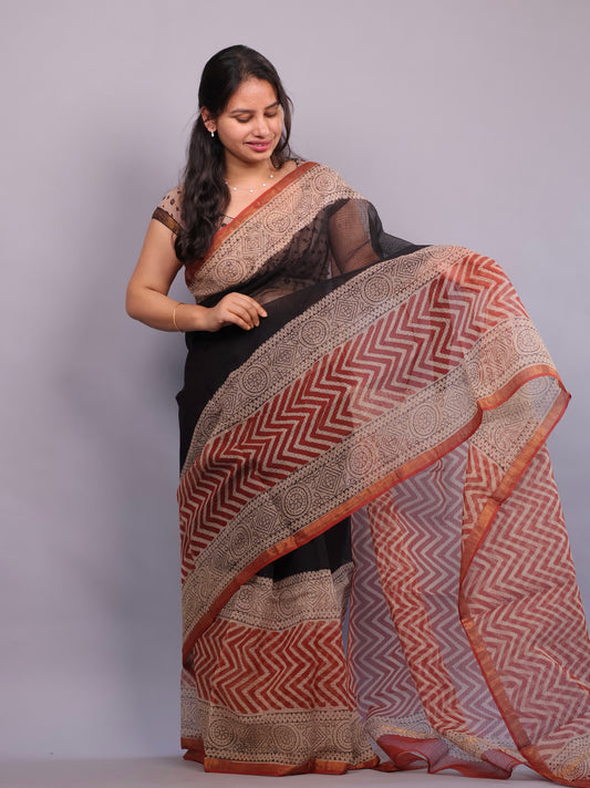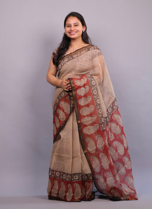 Bagru Hand block printed Kota Doria Saree