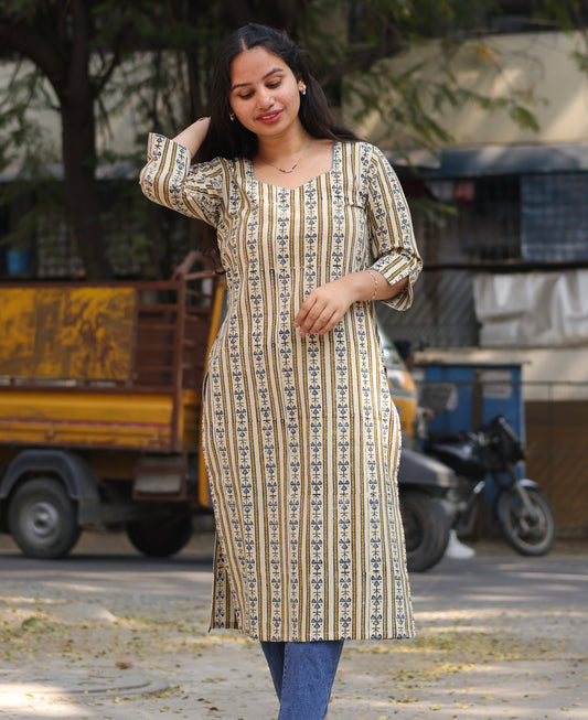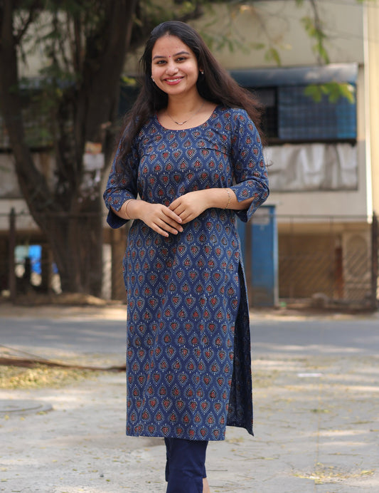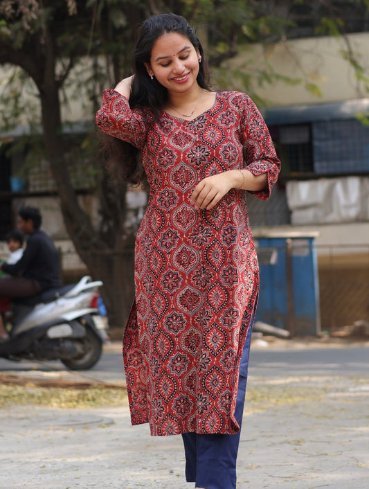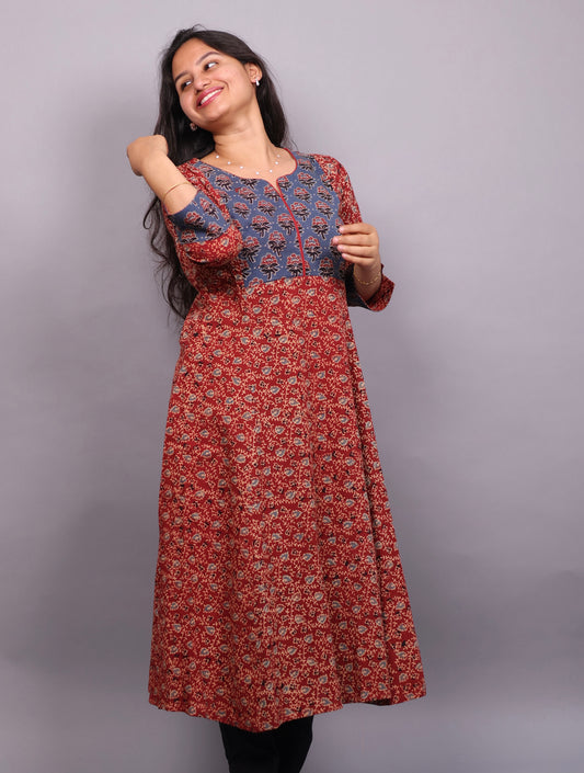 Red & Blue Ajrakh Hand Block printed Aline Kurti