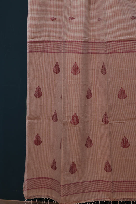 Sandal Pure Handwoven Malai Cotton Saree with Butta Weaving