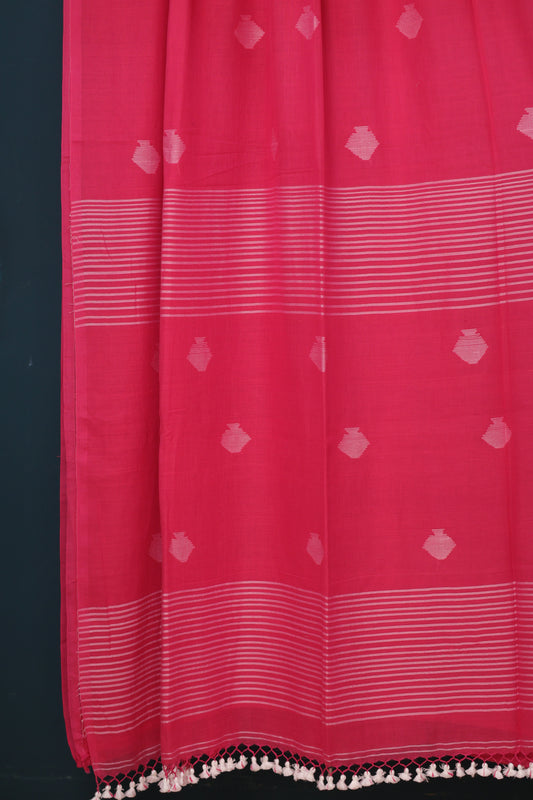 Pink Pure Handwoven Malai Cotton Saree with Butta Weaving