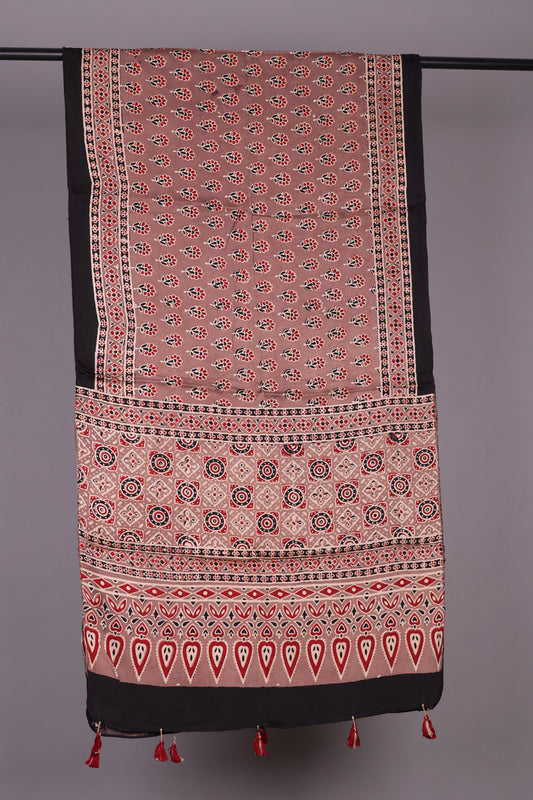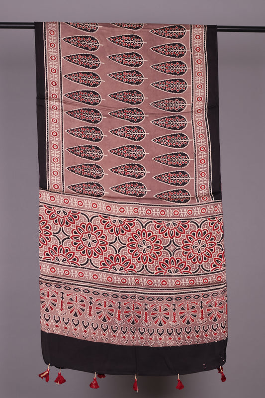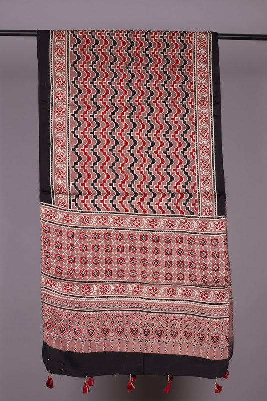 Ajrakh Hand Block Printed Modal Silk Stole | Looms & Tassels