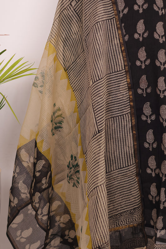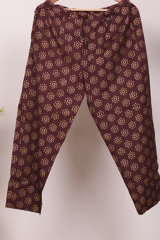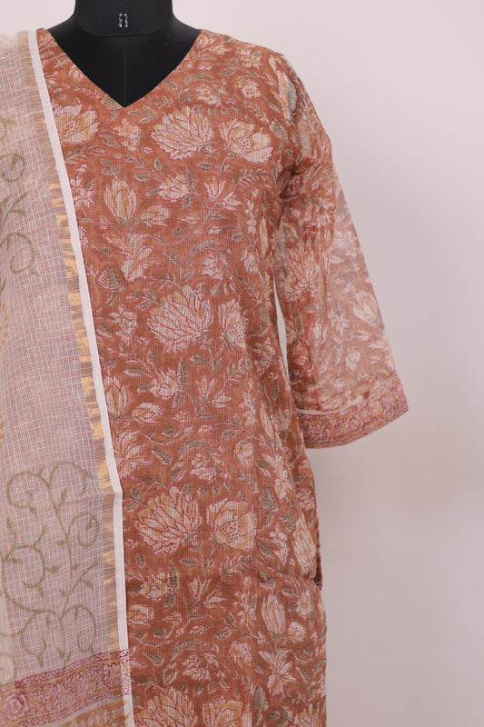Brown Handblock printed Pure Mul Cotton with Kota Duppata 3 piece suit (stitched)