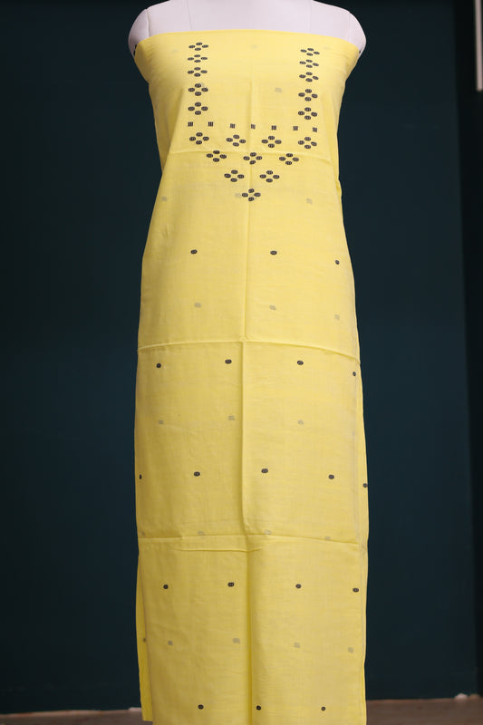 Yellow Handwoven weaving butta pure Malai cotton 2 piece suit sets