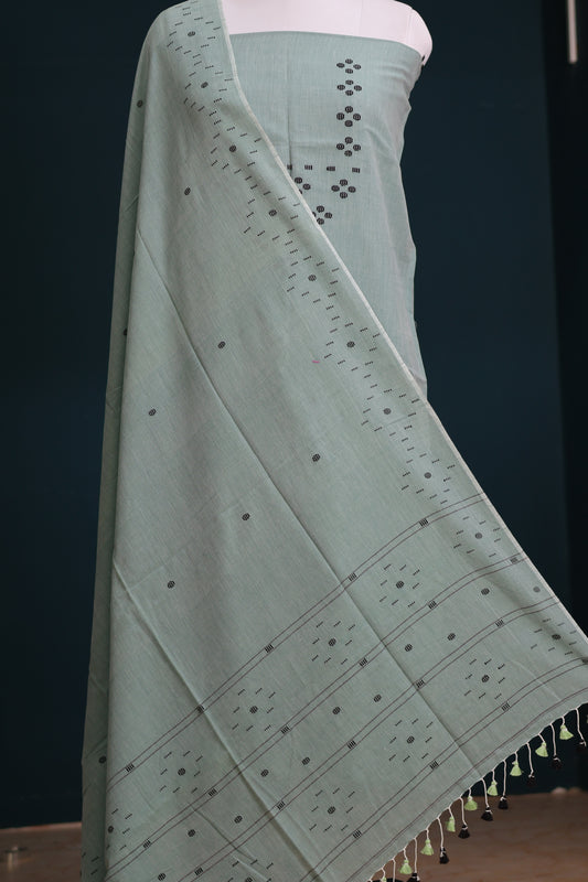 Grey Handwoven weaving butta pure Malai cotton 2 piece suit sets