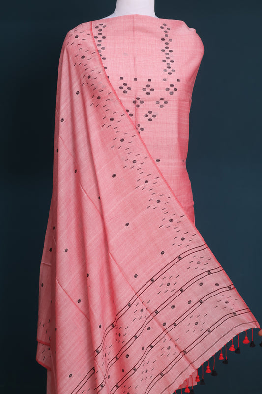 Pink Handwoven weaving butta pure Malai cotton 2 piece suit sets