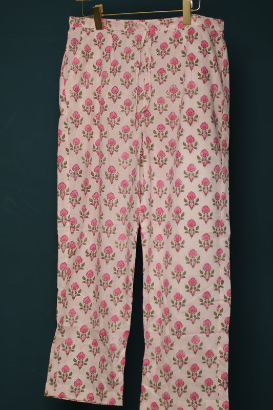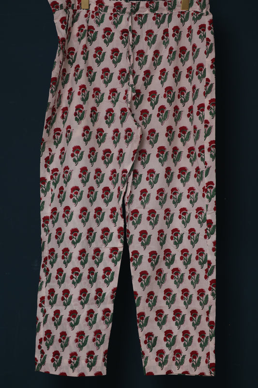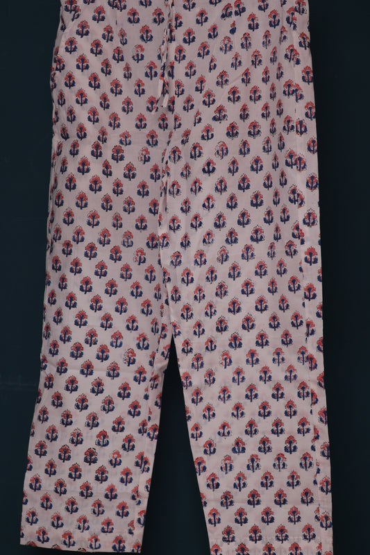 Pink Handblock printed Pure Mul Cotton with Kota Doria Duppata 3 piece suit (stitched)