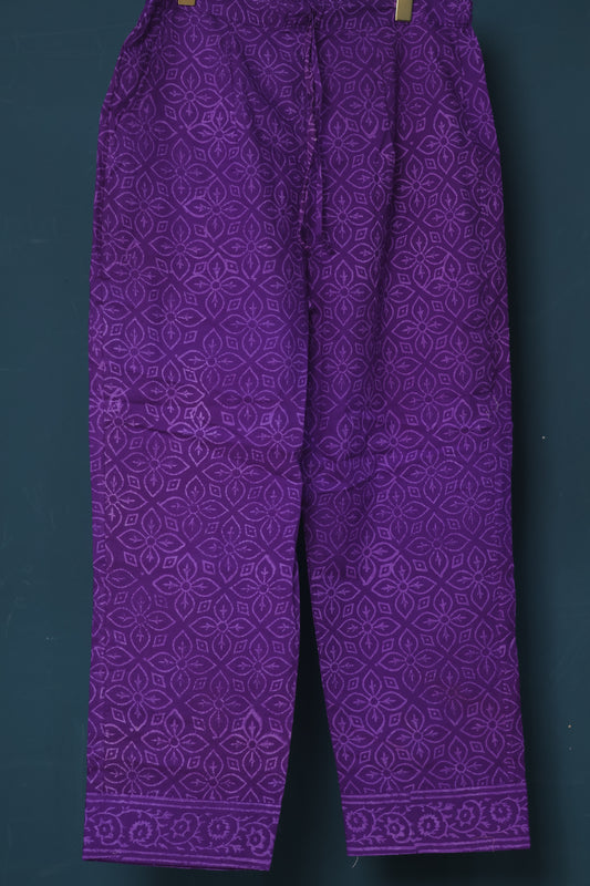 Purple Handblock printed Pure Mul Cotton with Kota Doria Duppata 3 piece suit (stitched)