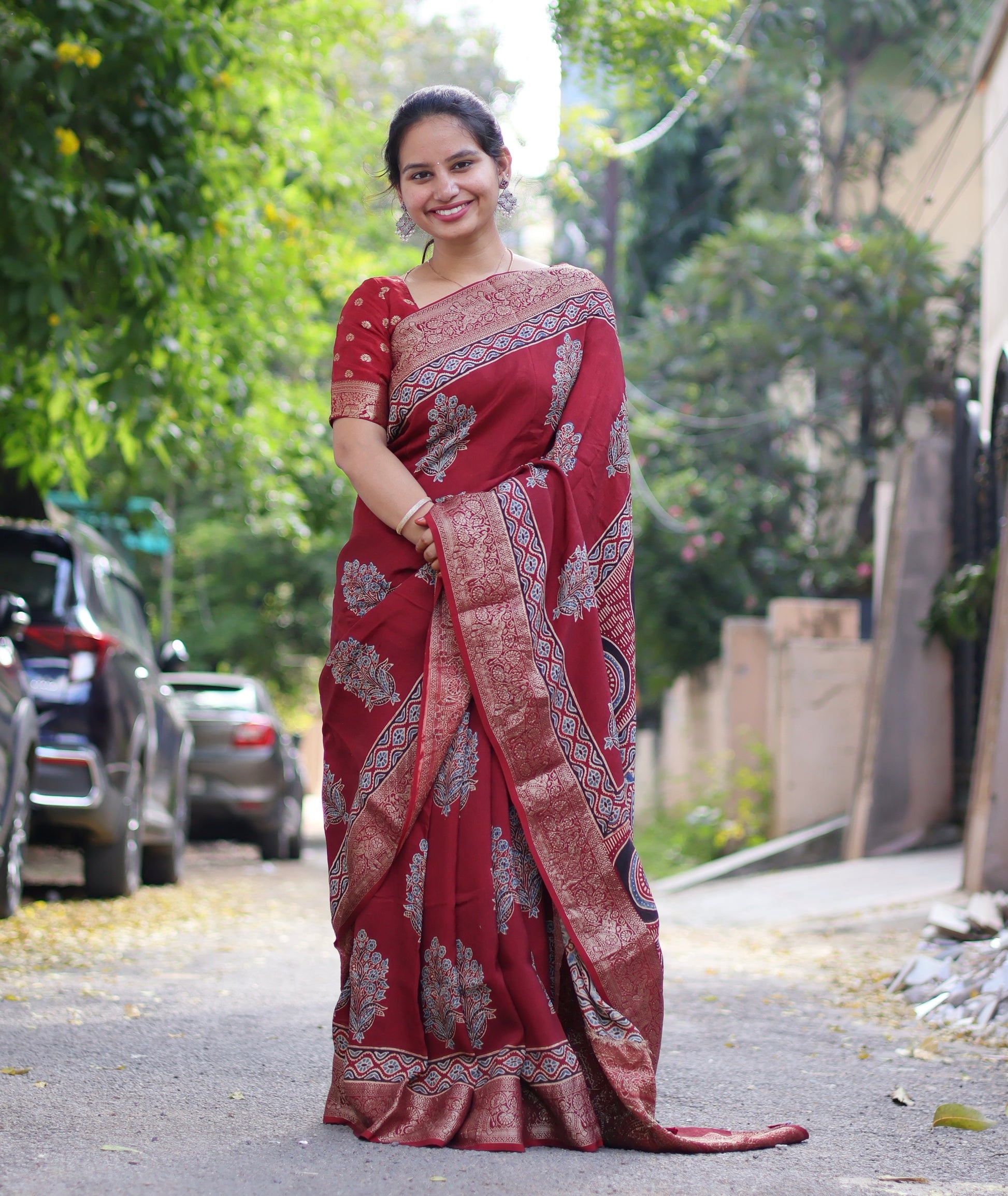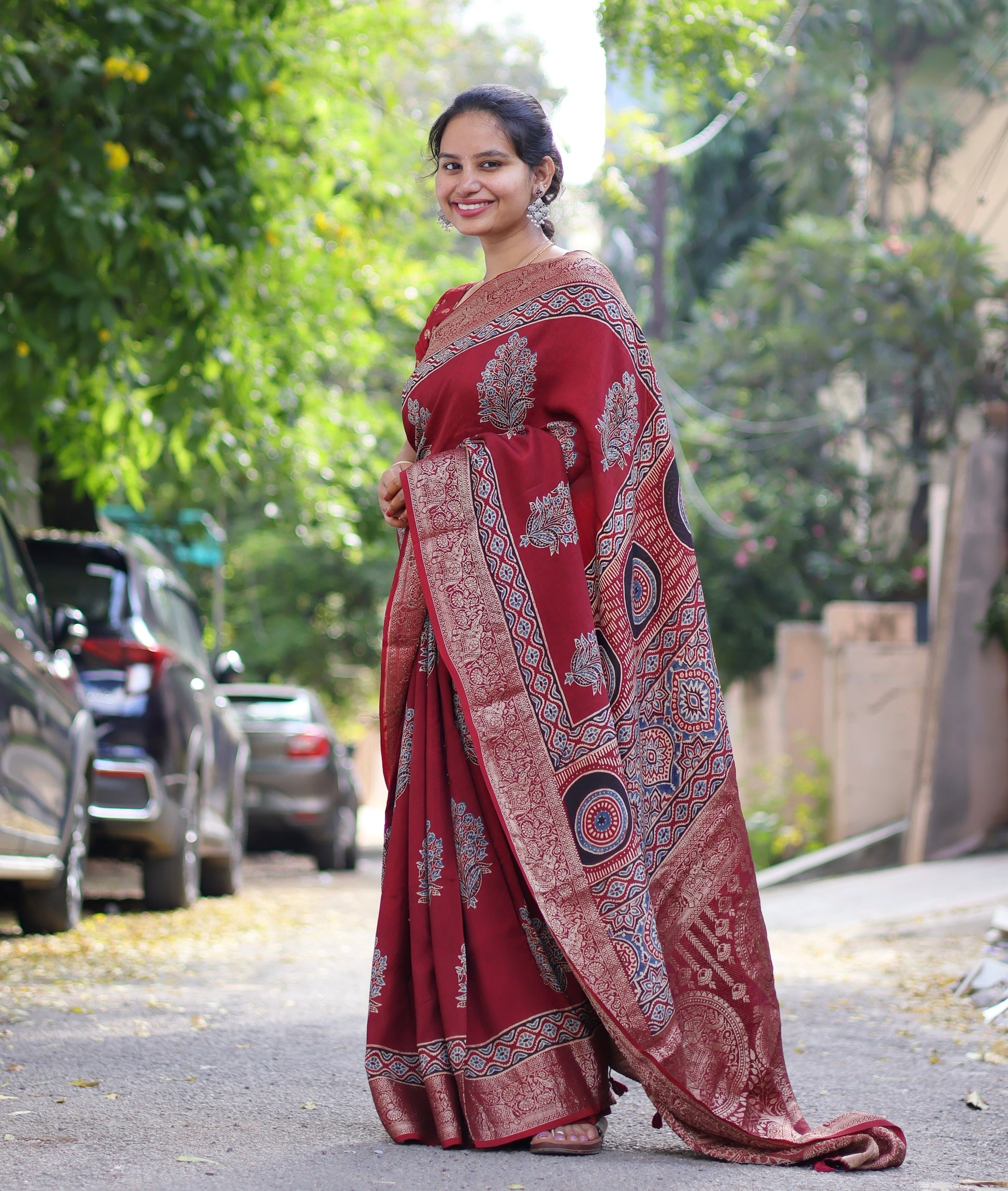 AJRAKH SAREES HOLD SLIGHT COLOUR IMPERFECTIONS HERE AND THERE DUE TO MANUAL PROCESS AND WILL NOT BE CONSIDERED AS DEFECTS