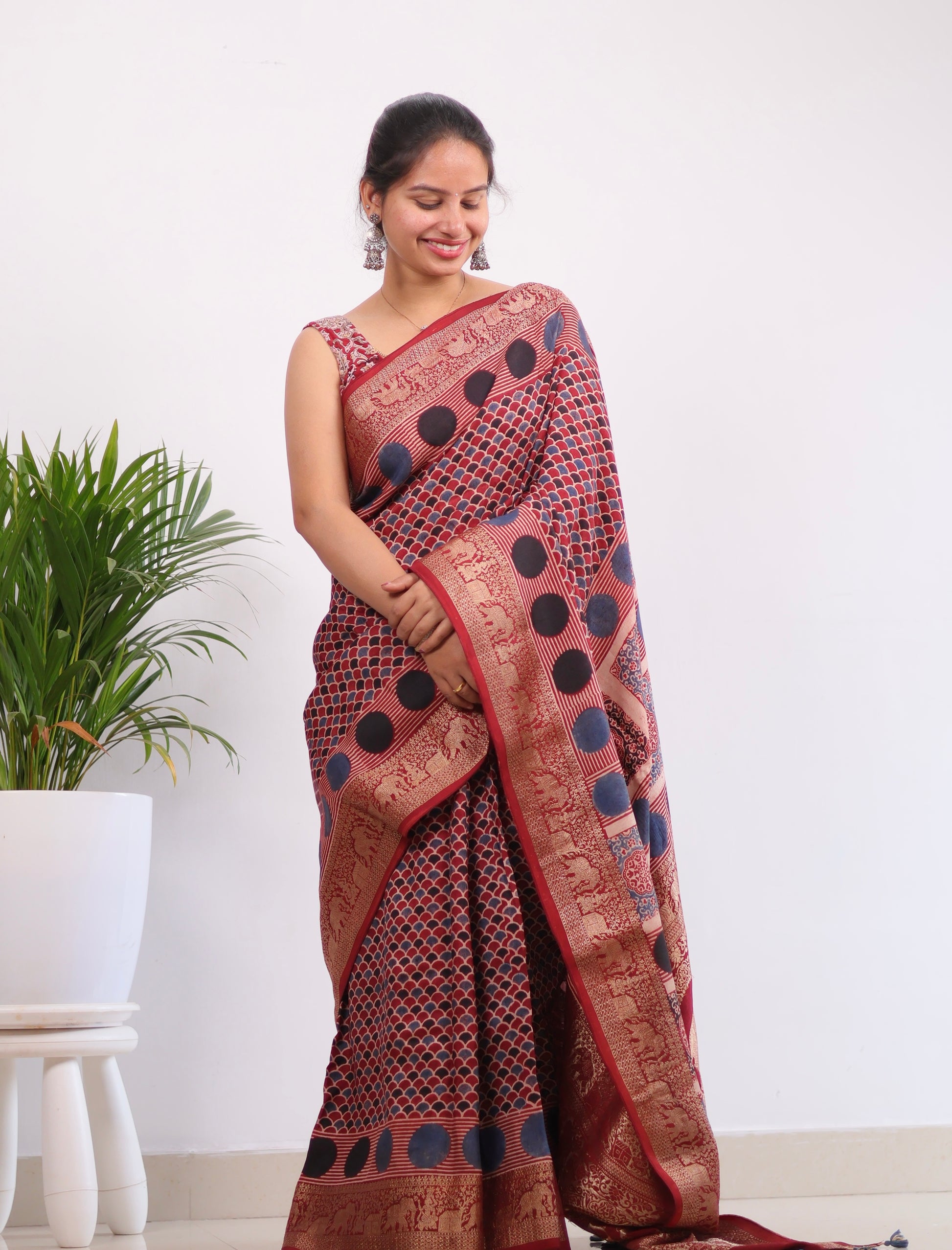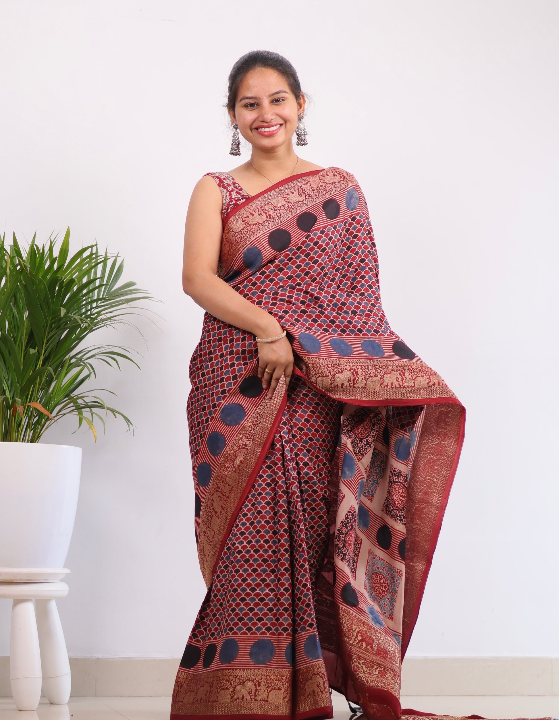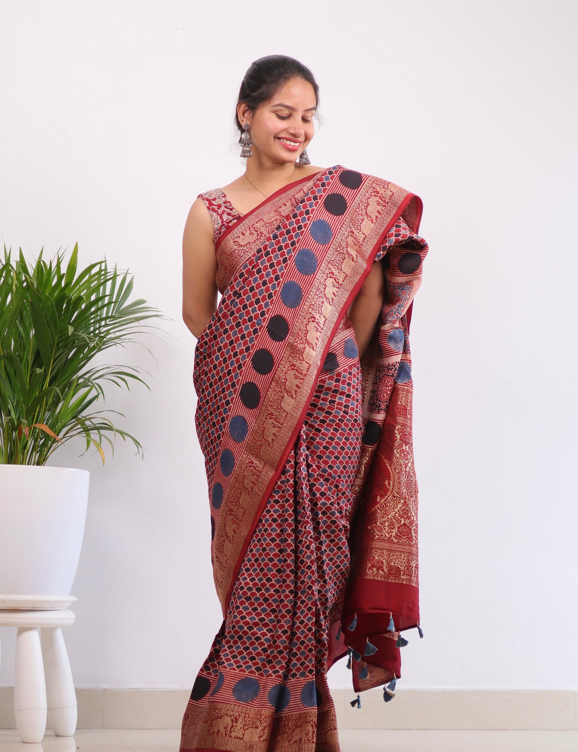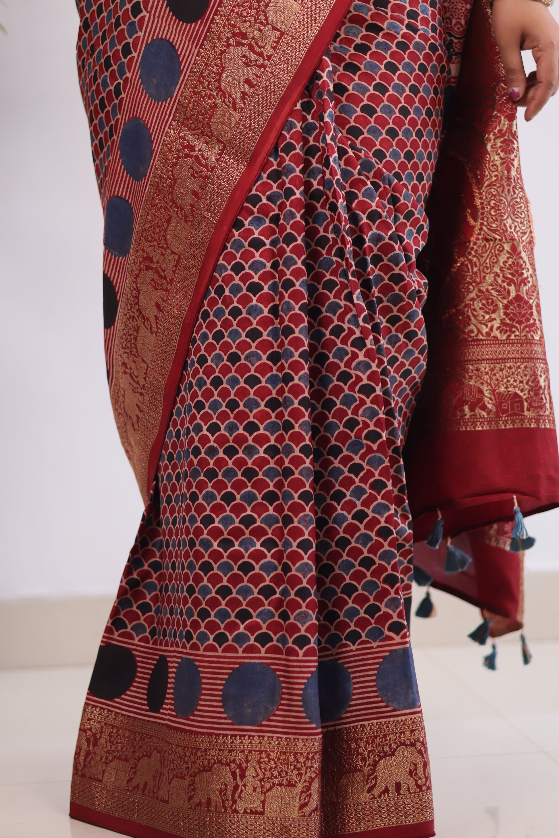 AJRAKH SAREES HOLD SLIGHT COLOUR IMPERFECTIONS HERE AND THERE DUE TO MANUAL PROCESS AND WILL NOT BE CONSIDERED AS DEFECTS