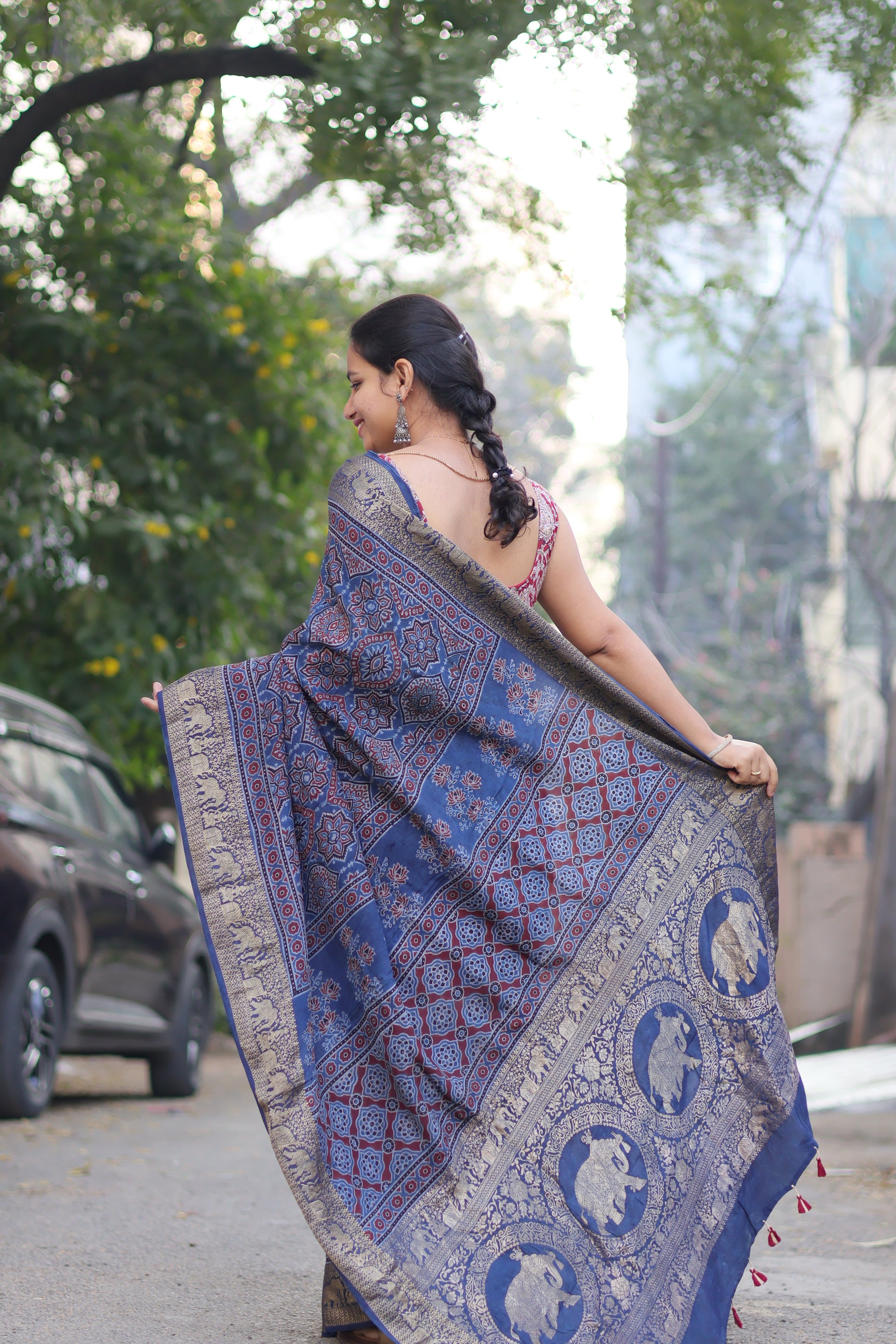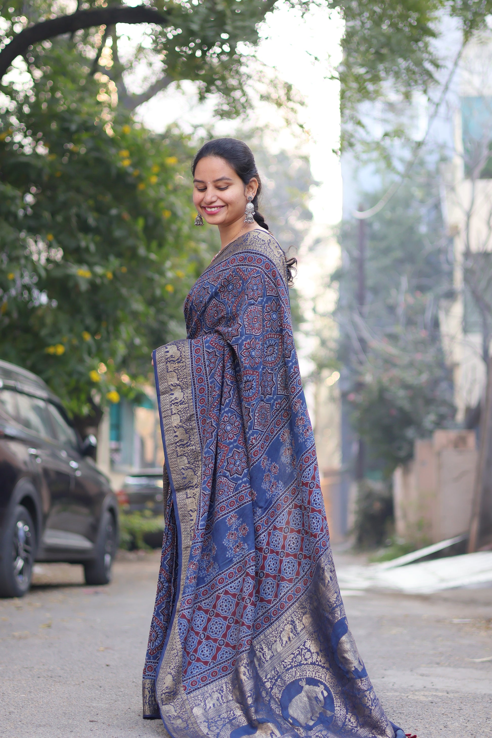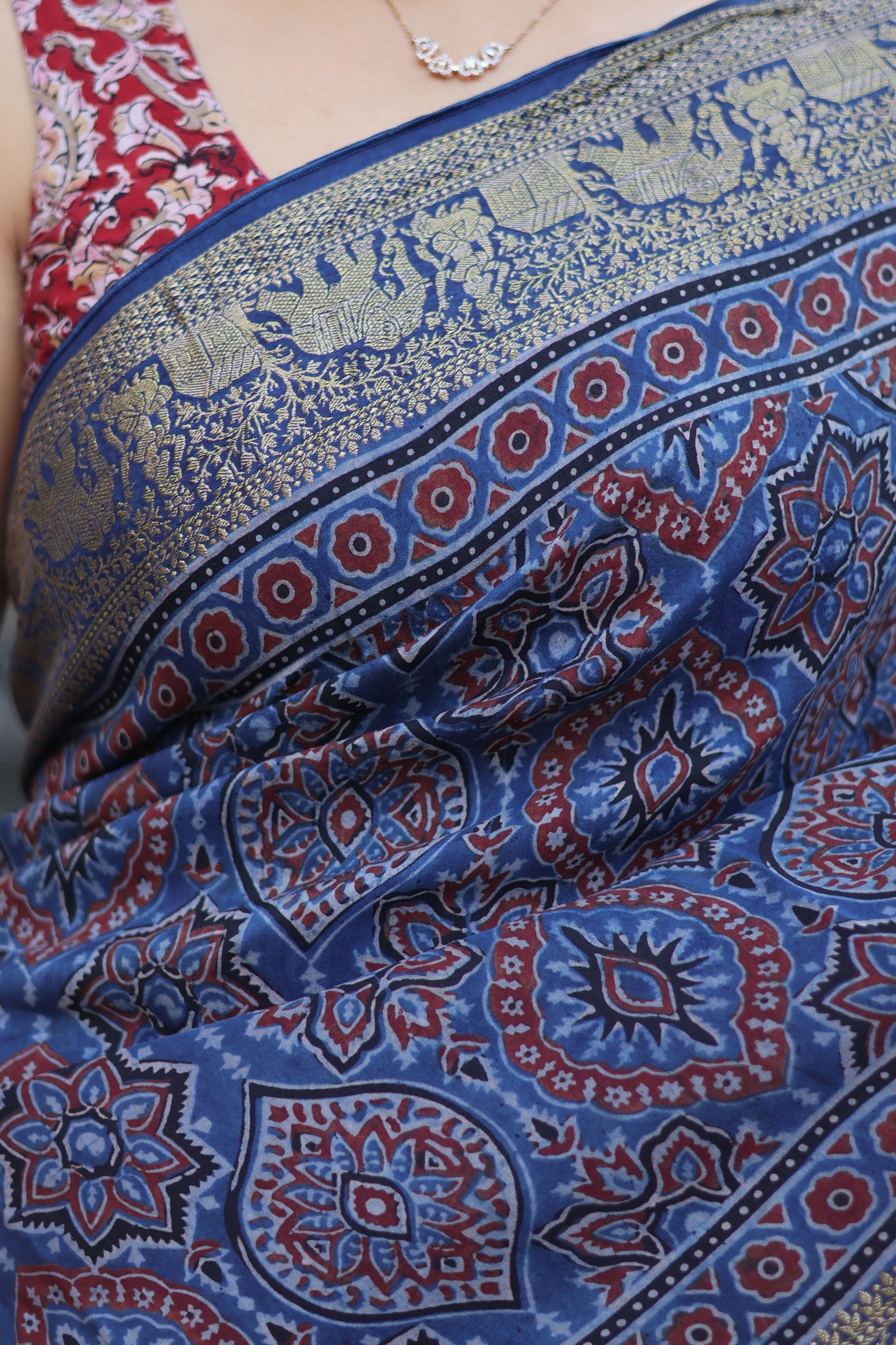 AJRAKH SAREES HOLD SLIGHT COLOUR IMPERFECTIONS HERE AND THERE DUE TO MANUAL PROCESS AND WILL NOT BE CONSIDERED AS DEFECTS