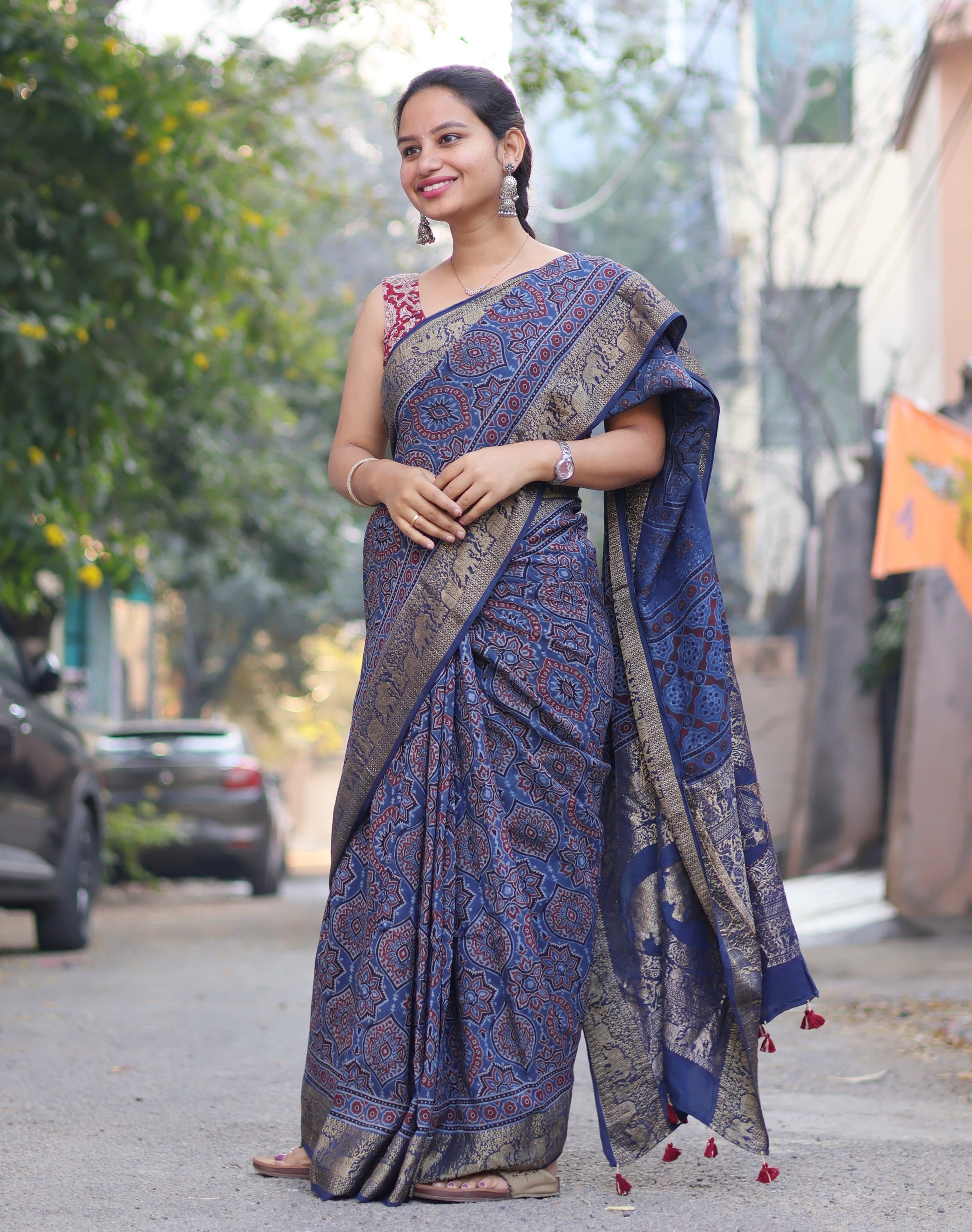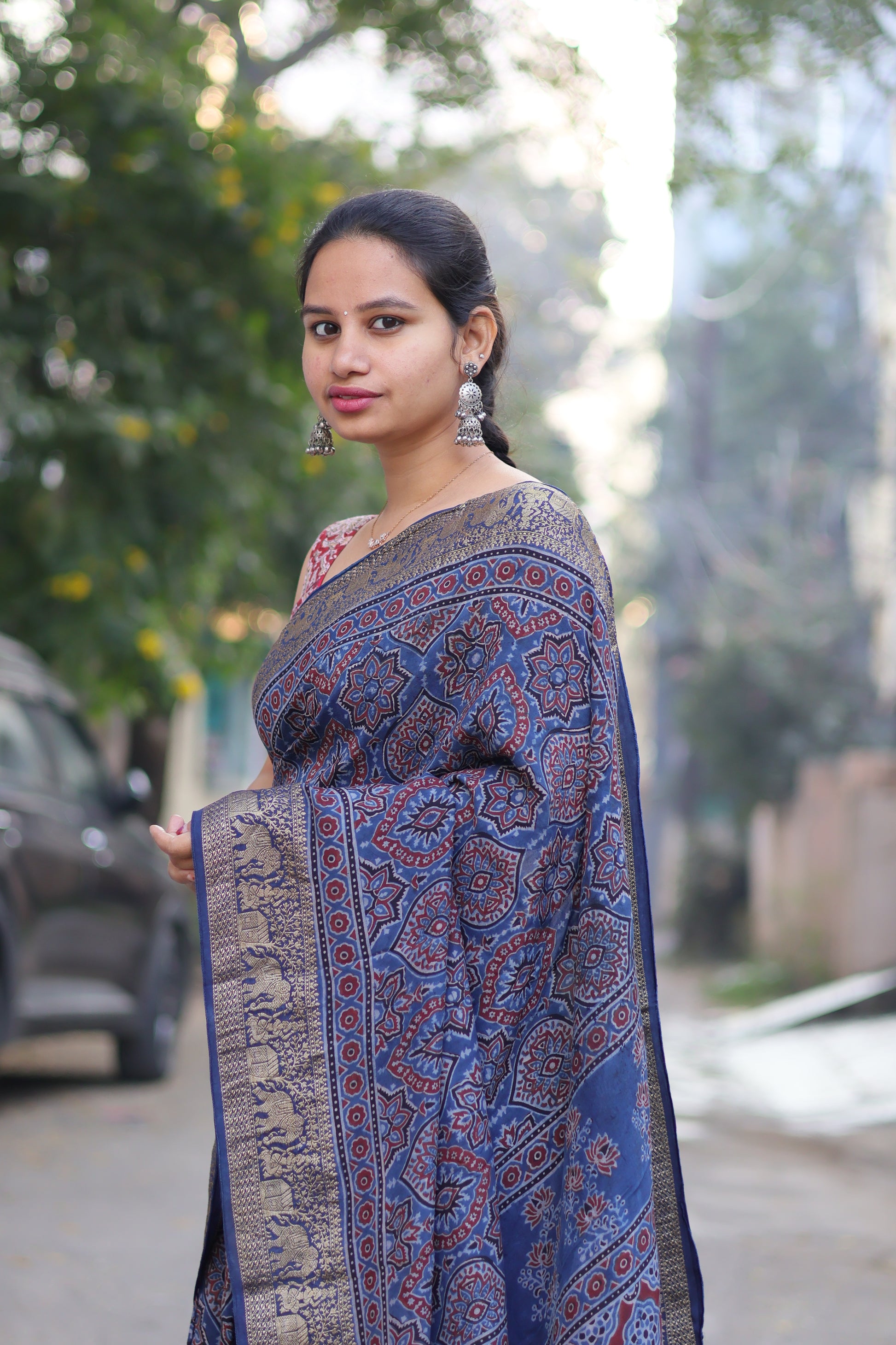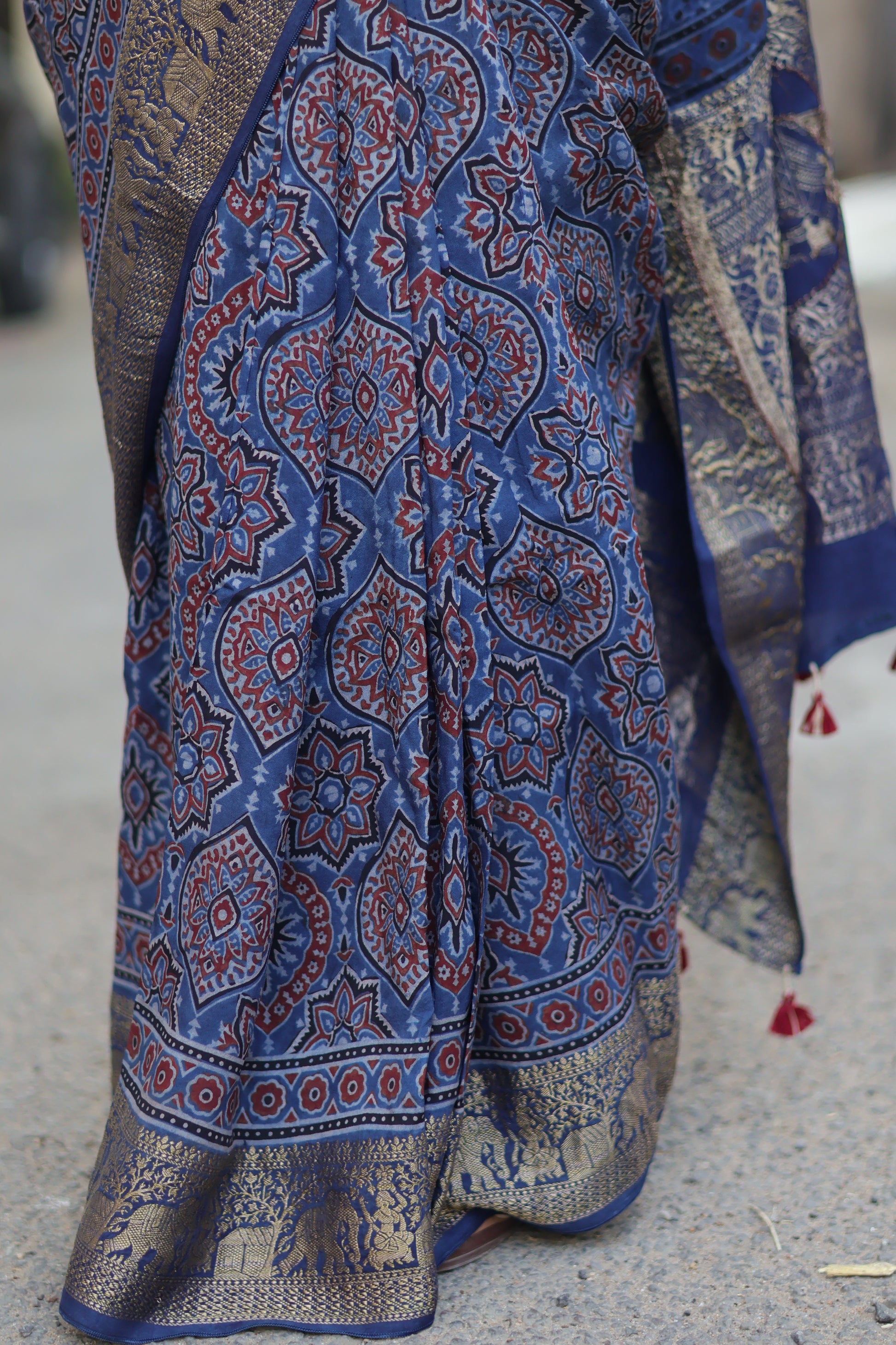 AJRAKH SAREES HOLD SLIGHT COLOUR IMPERFECTIONS HERE AND THERE DUE TO MANUAL PROCESS AND WILL NOT BE CONSIDERED AS DEFECTS