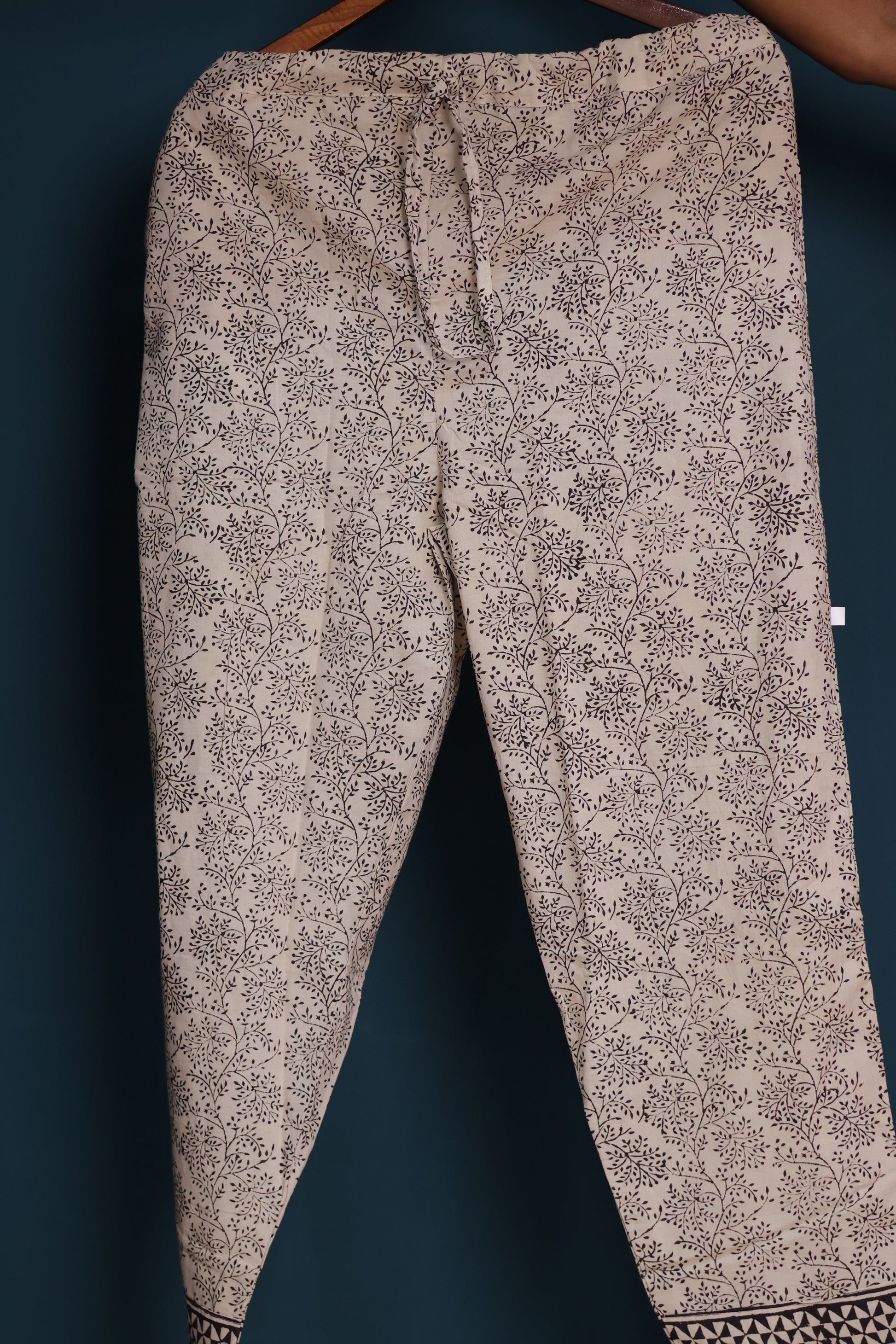 Handblock Bagru kota top with kota duppata accessorized with tassels. bottom mulmul cotton ( 3 piece suit set stitched )
