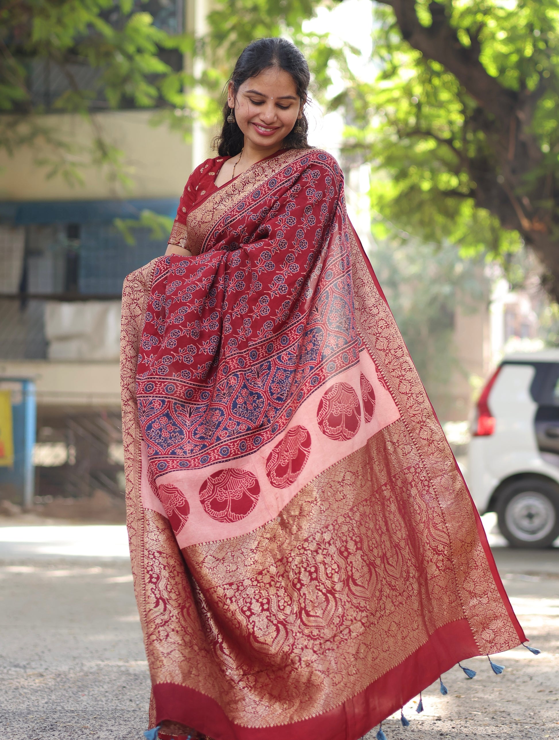 AJRAKH SAREES HOLD SLIGHT COLOUR IMPERFECTIONS HERE AND THERE DUE TO MANUAL PROCESS AND WILL NOT BE CONSIDERED AS DEFECTS