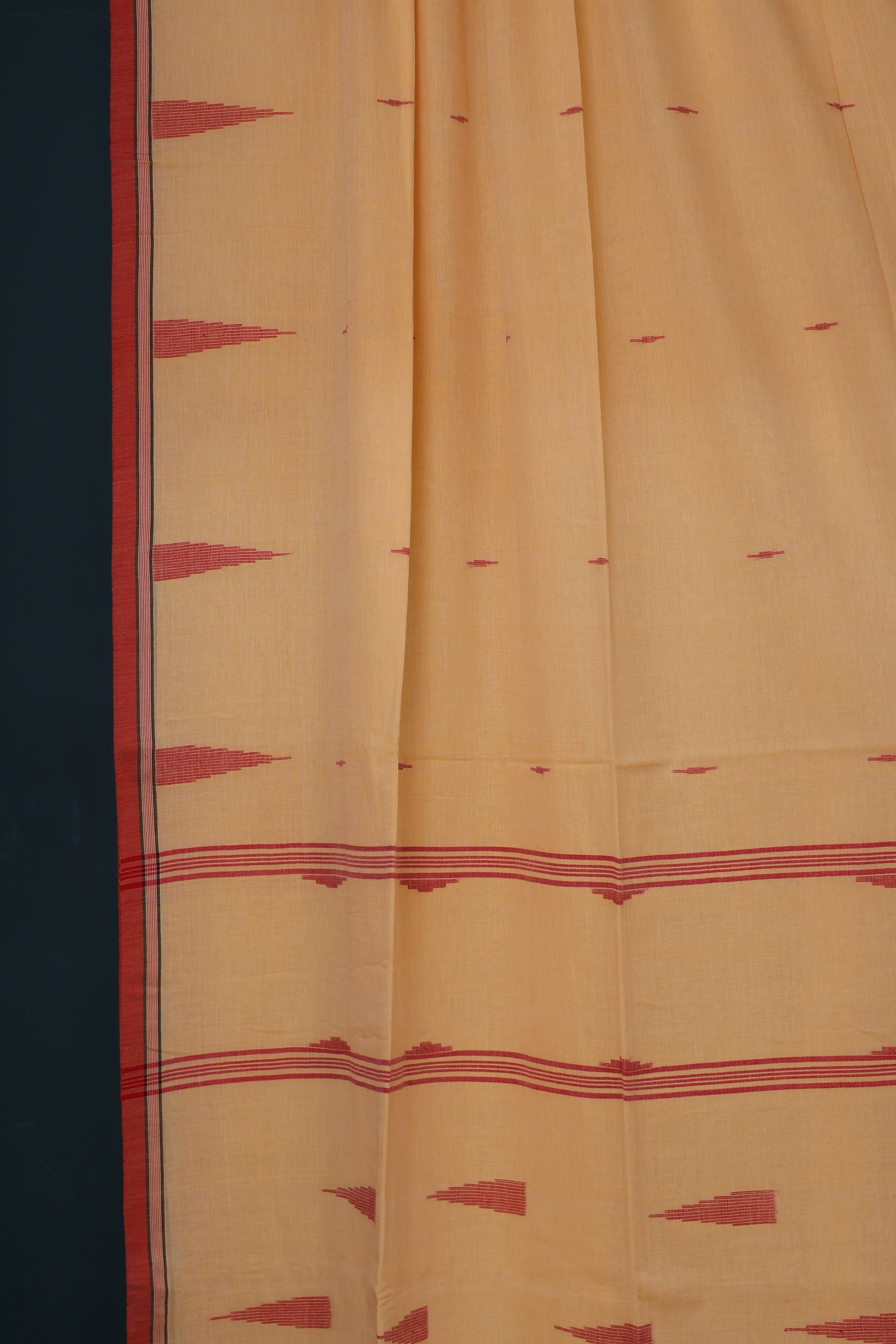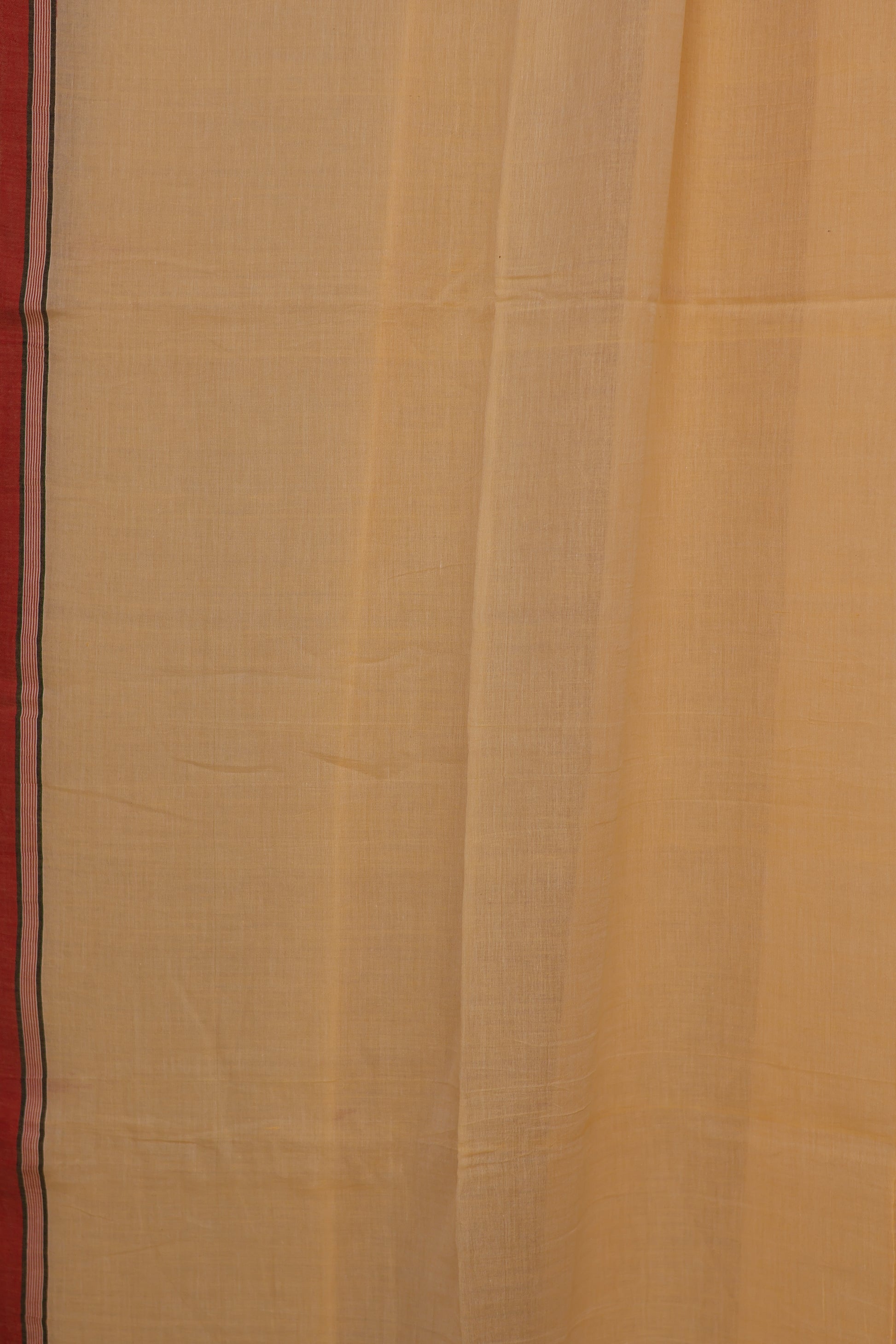 Cream & Red Pure Handwoven Malai Cotton Saree with Butta Weaving border