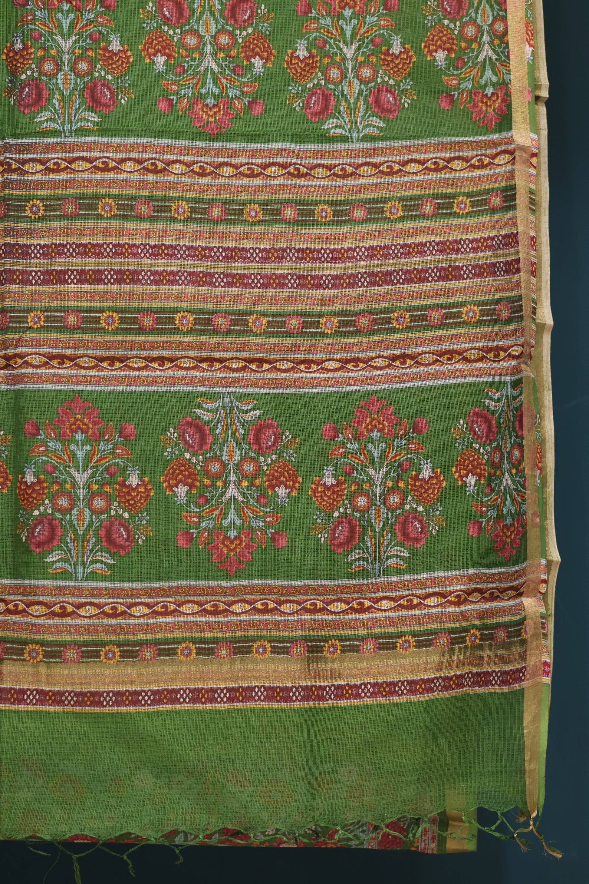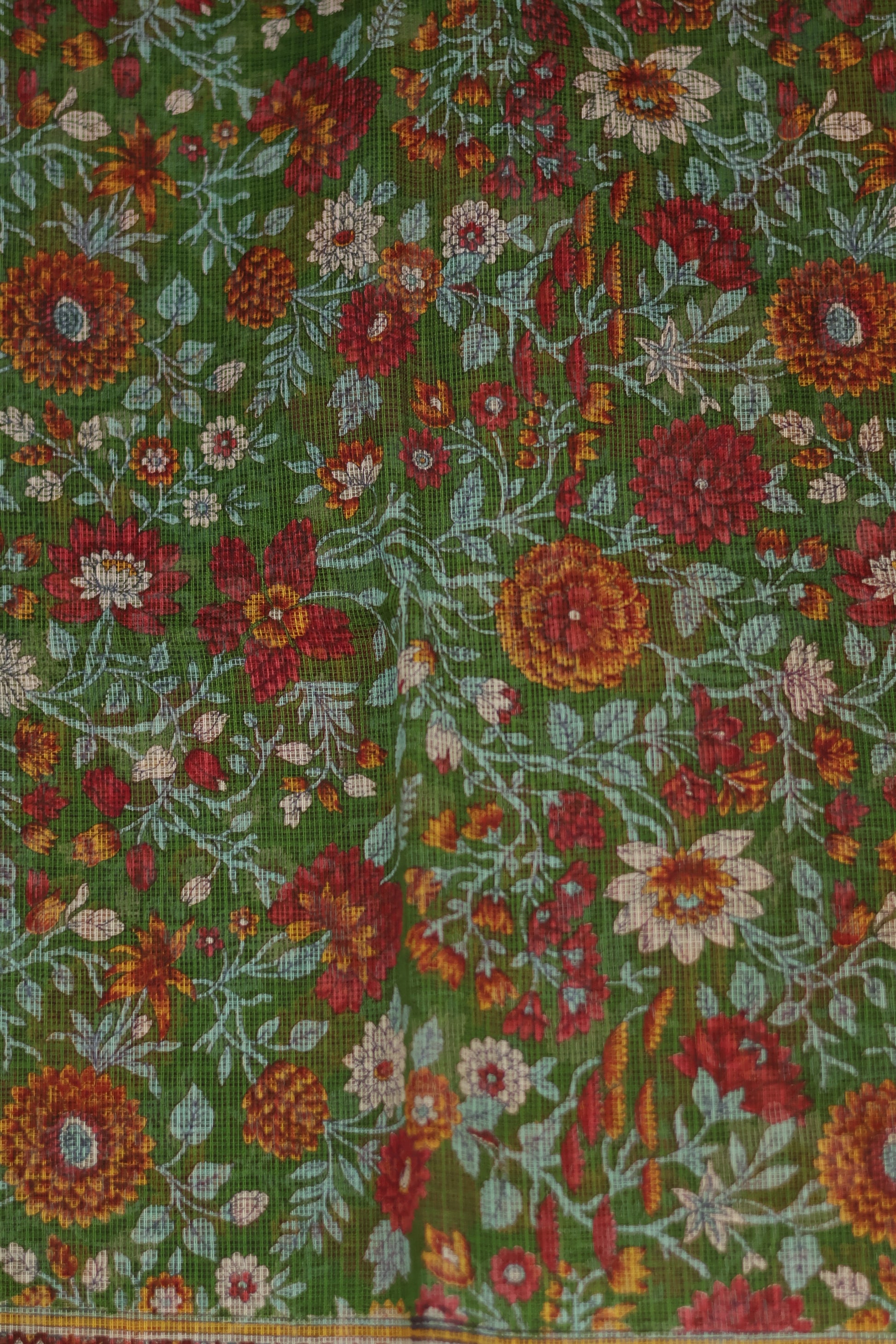 Green Digital printed Kota Doria Saree