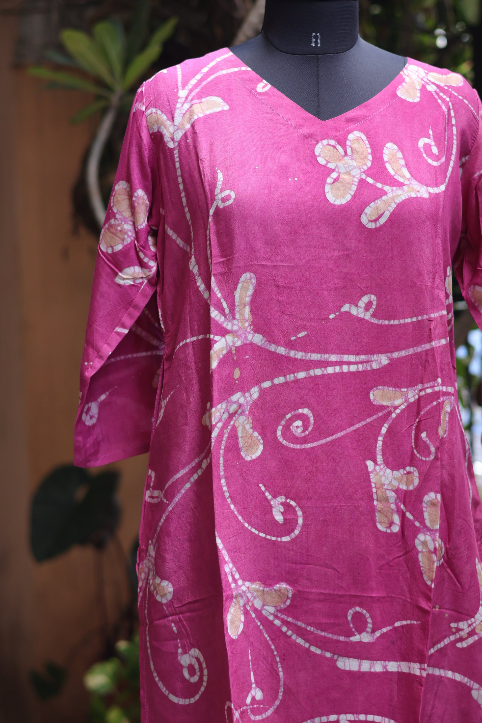 Pink Hand drawn Batik silk Kurti