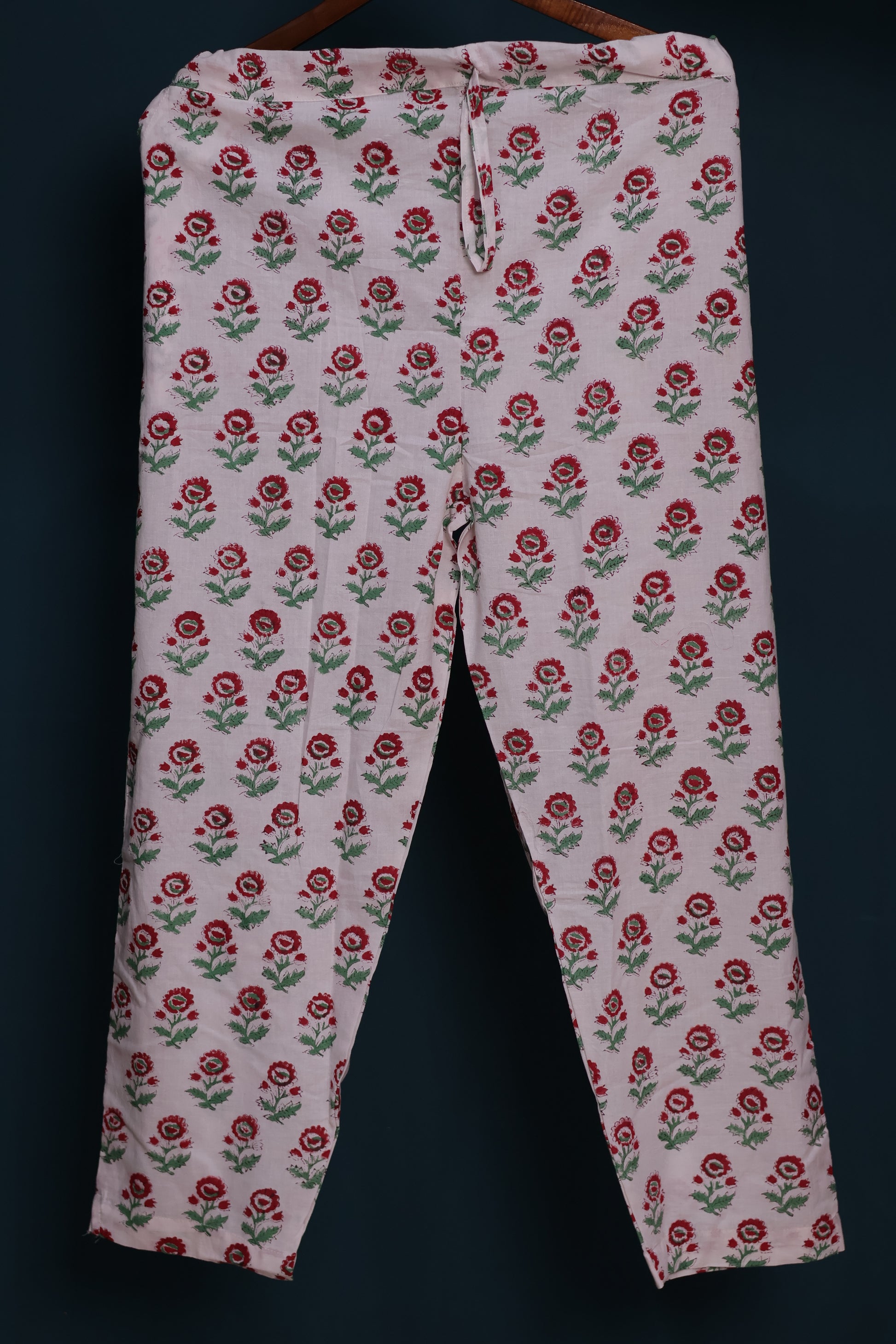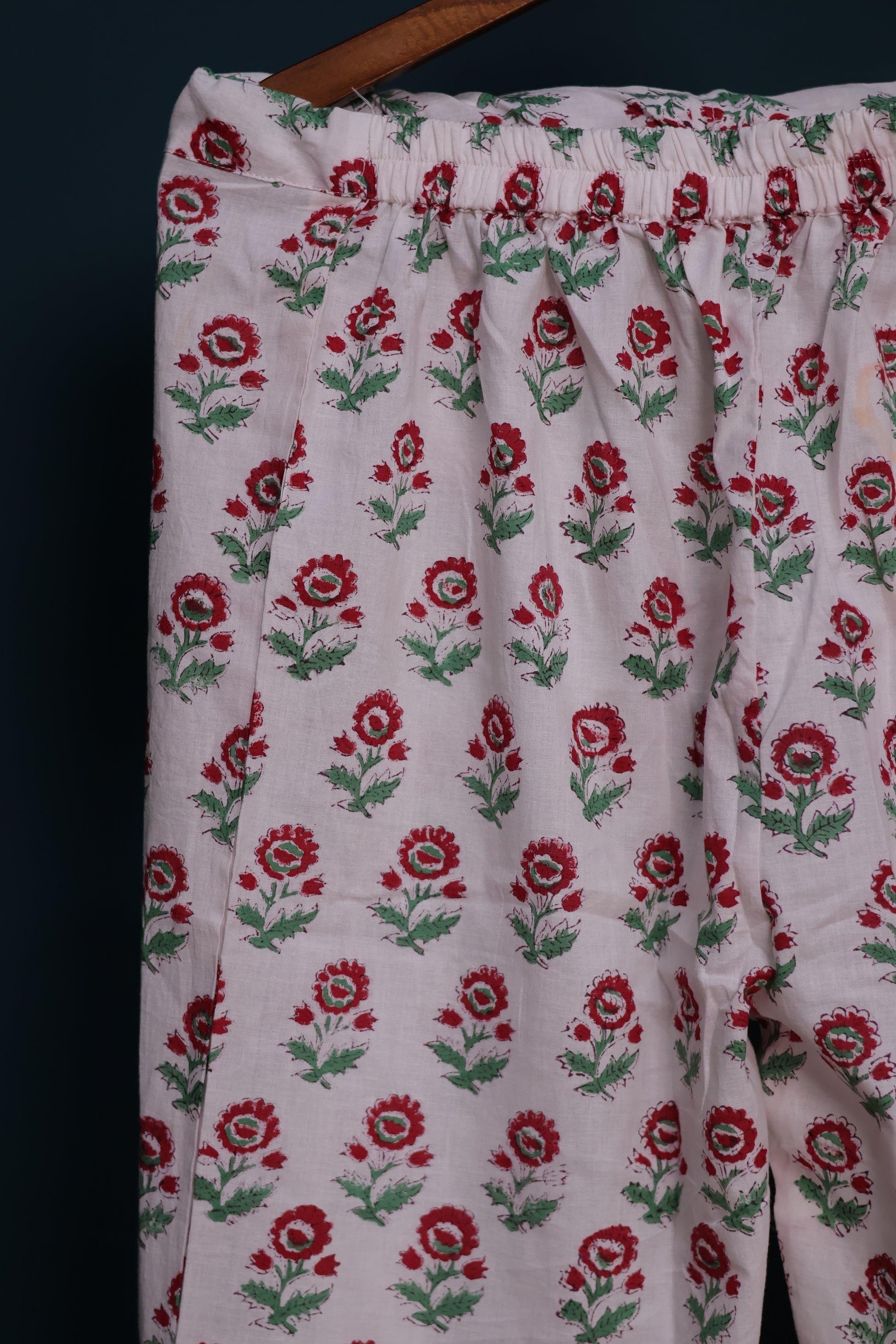 Handblock Bagru kota top with kota duppata accessorized with tassels. bottom mulmul cotton ( 3 piece suit set stitched )