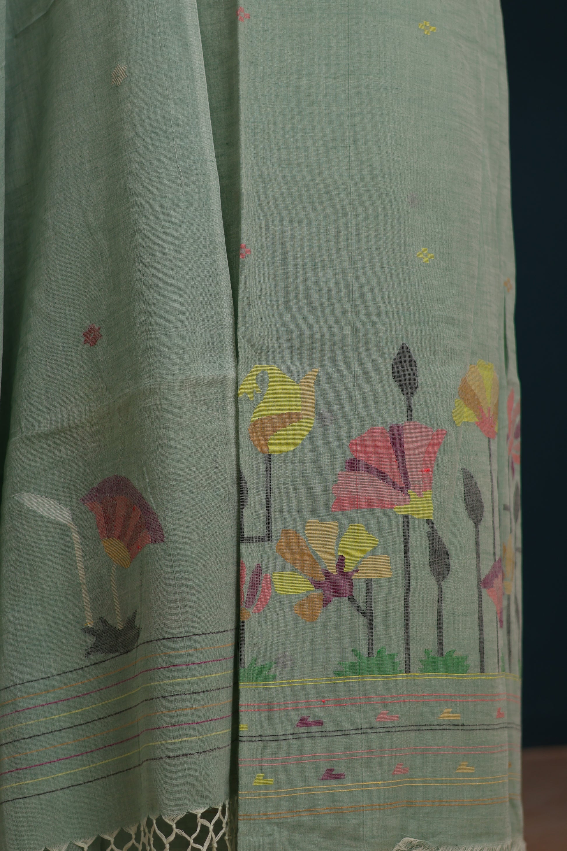 Every piece reflects the beauty of handmade craftsmanship, with minor irregularities in the weave or color that add character and authenticity. The soft floral motifs and subtle texture create a graceful look that suits both everyday wear and special occasions.
