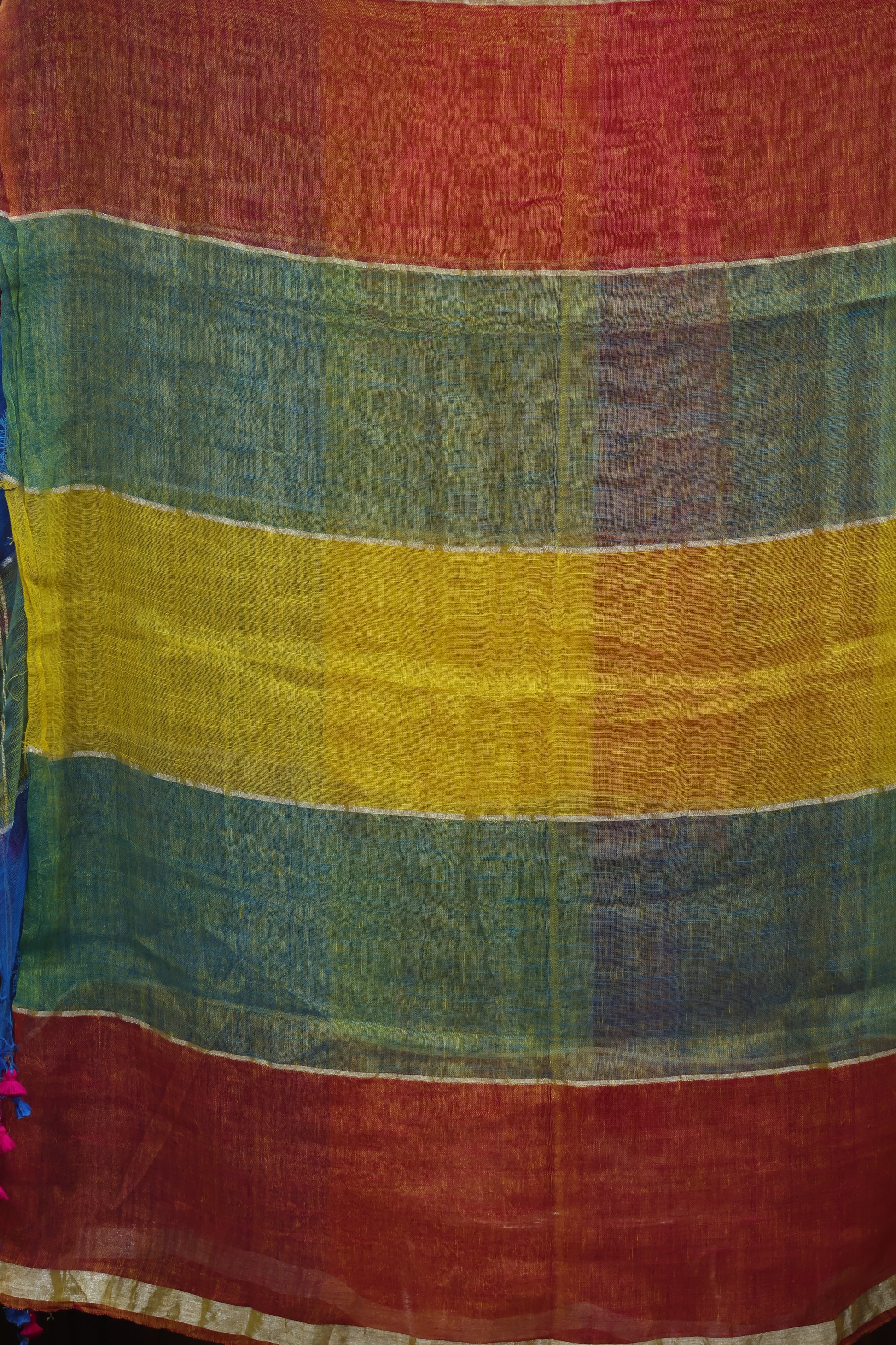 Multicolor Pure Handwoven Linen Saree