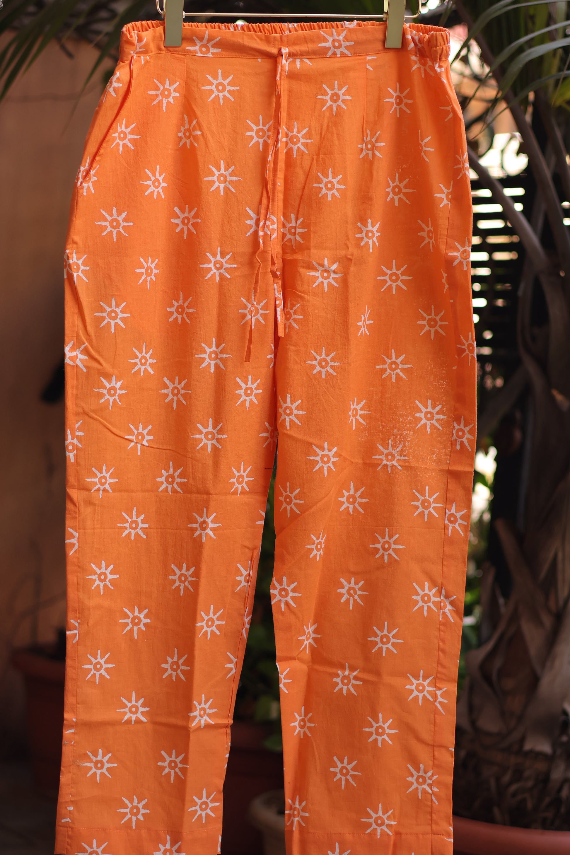 Orange Handblock printed Pure Mul Cotton Sweet Heart Neck with Mul Cotton Duppata 3 piece suit (stitched)