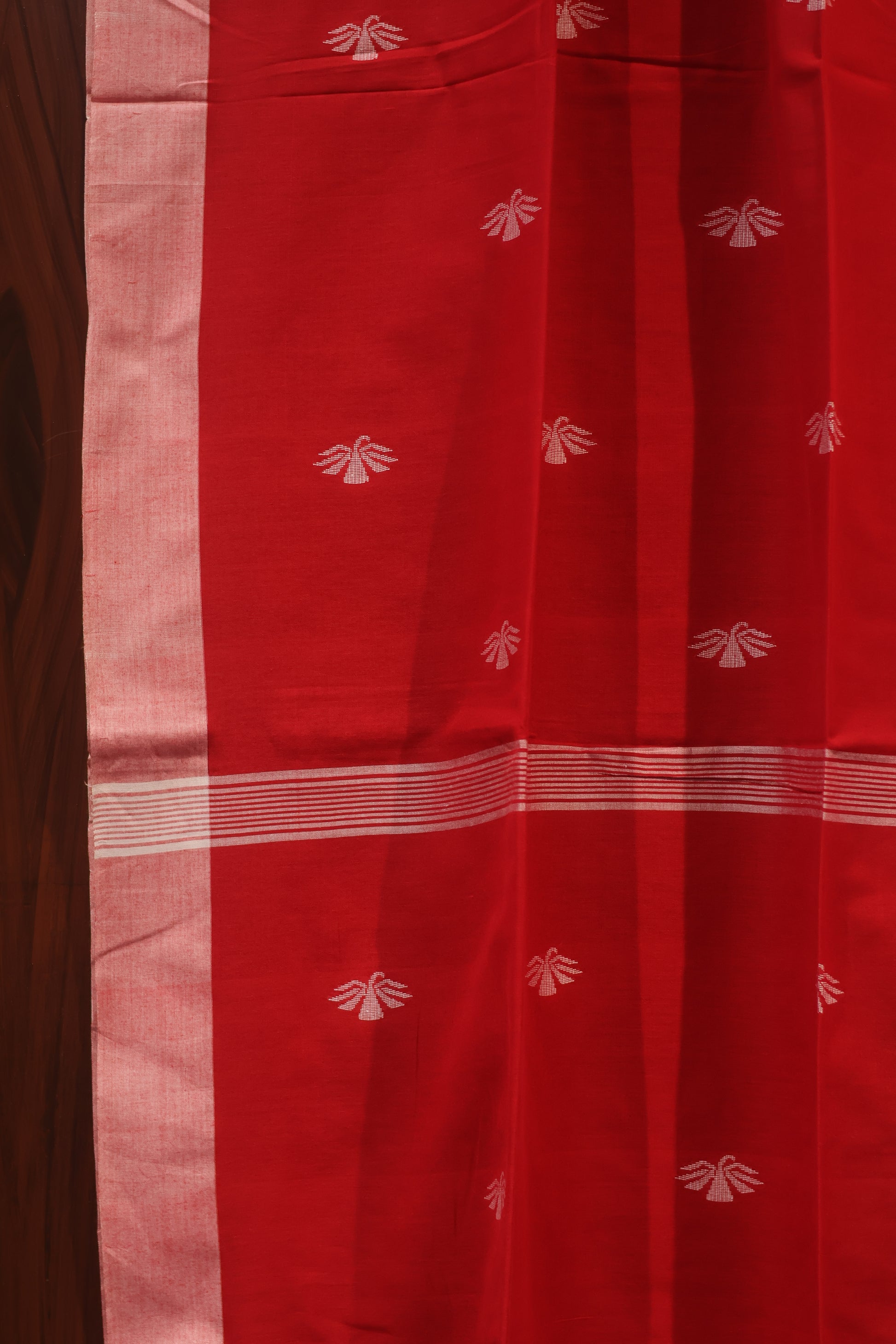 Red Pure Handwoven Jamdhani butta Malai Cotton Saree