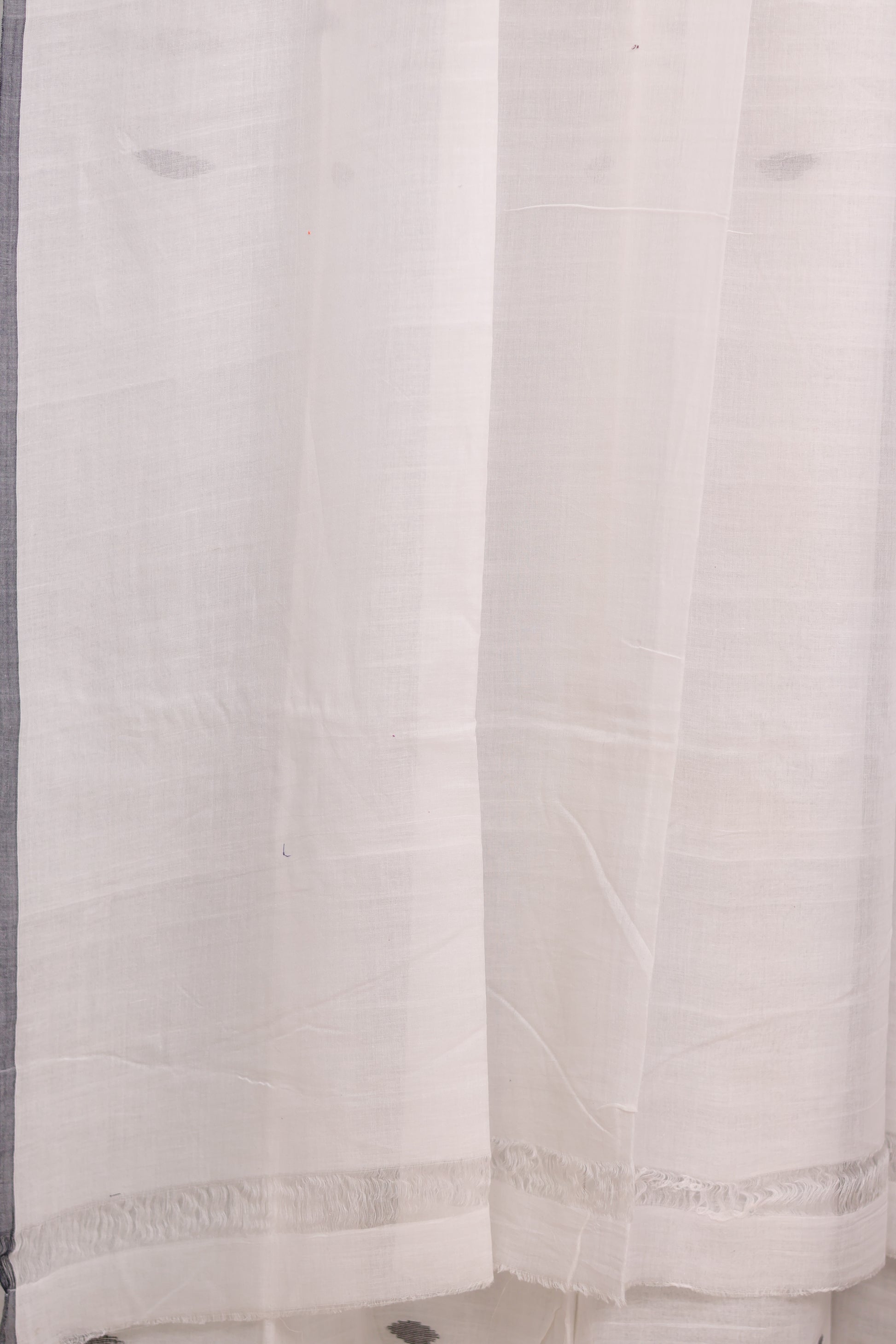 White & black Pure Handwoven Malai Cotton Saree with Butta Weaving