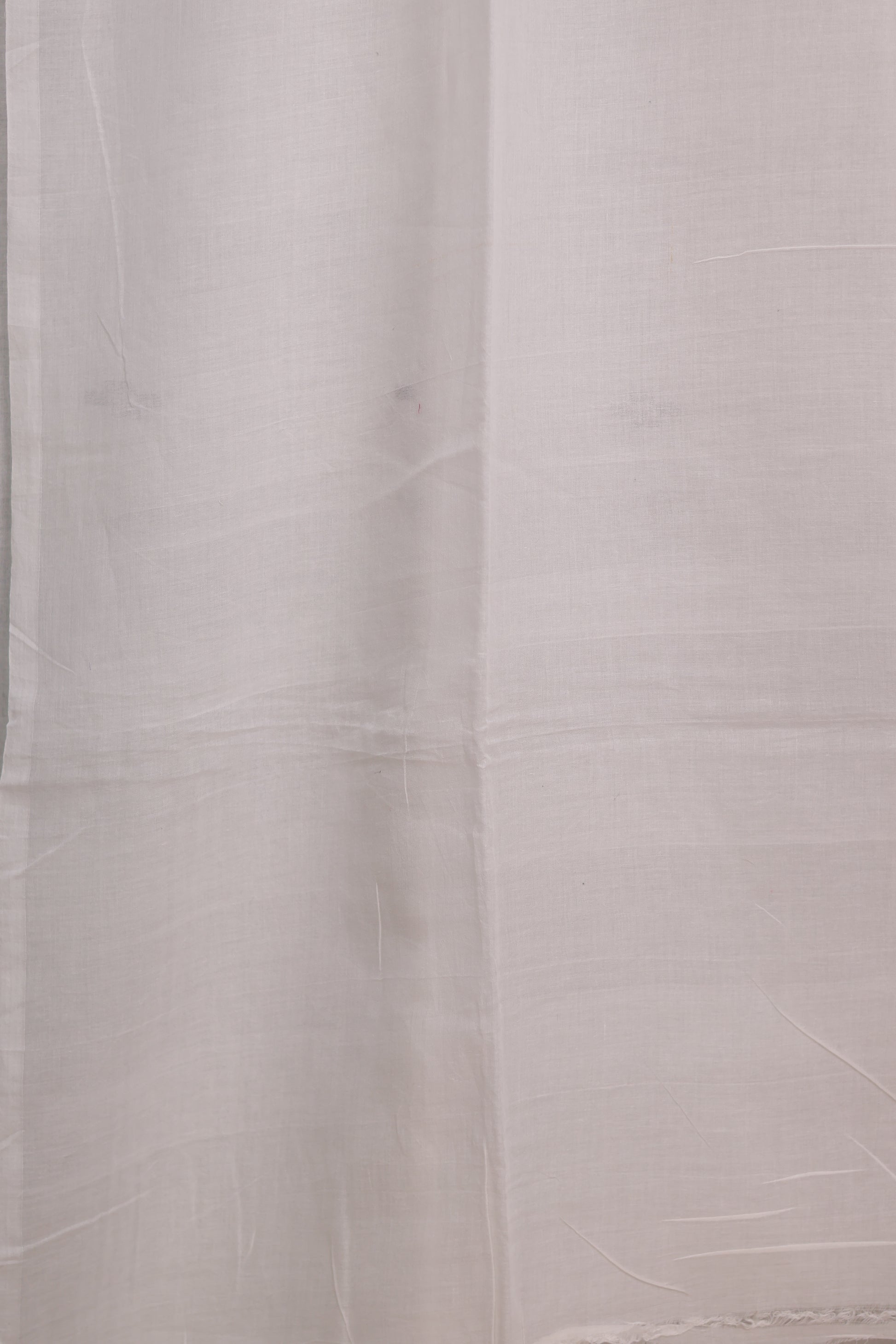 White & Black Pure Handwoven Malai Cotton Saree with Butta Weaving