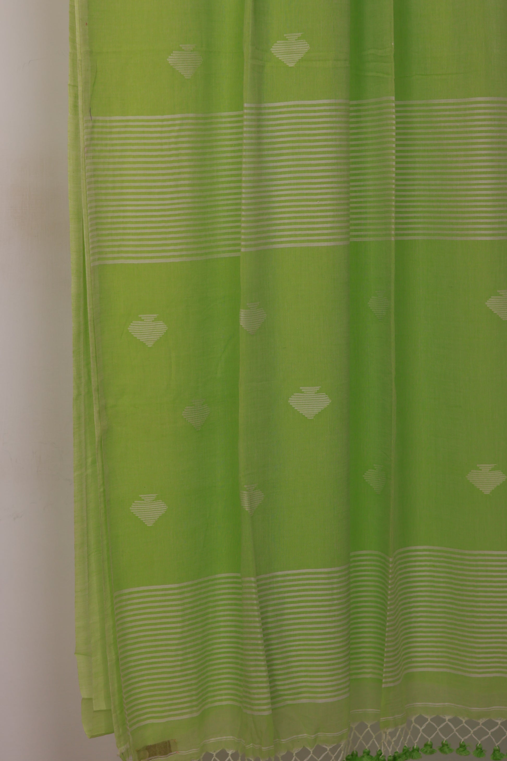 Green Pure Handwoven Malai Cotton Saree with Butta Weaving