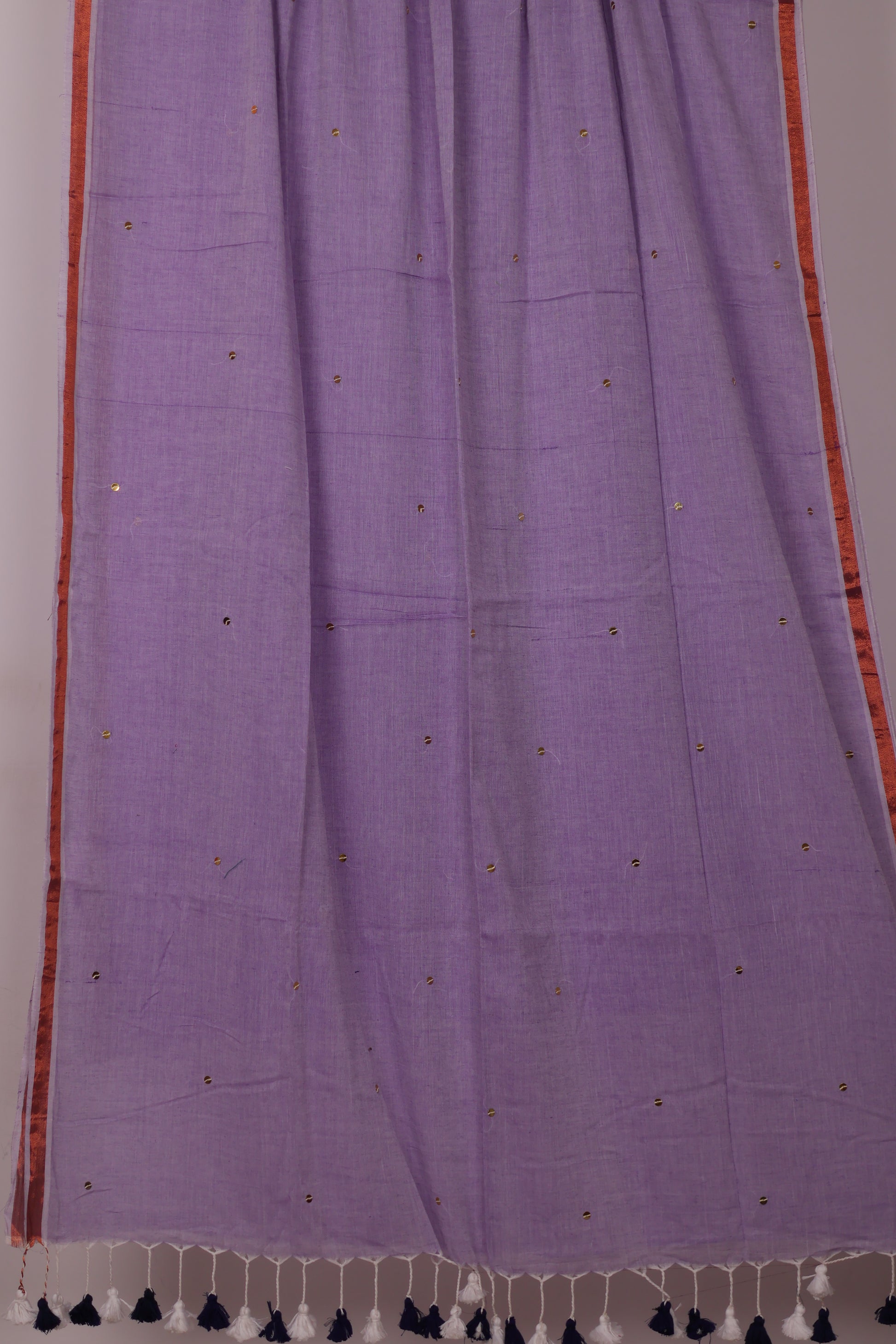 Lavender Pure Handwoven Malai Cotton Saree with Sequence Work