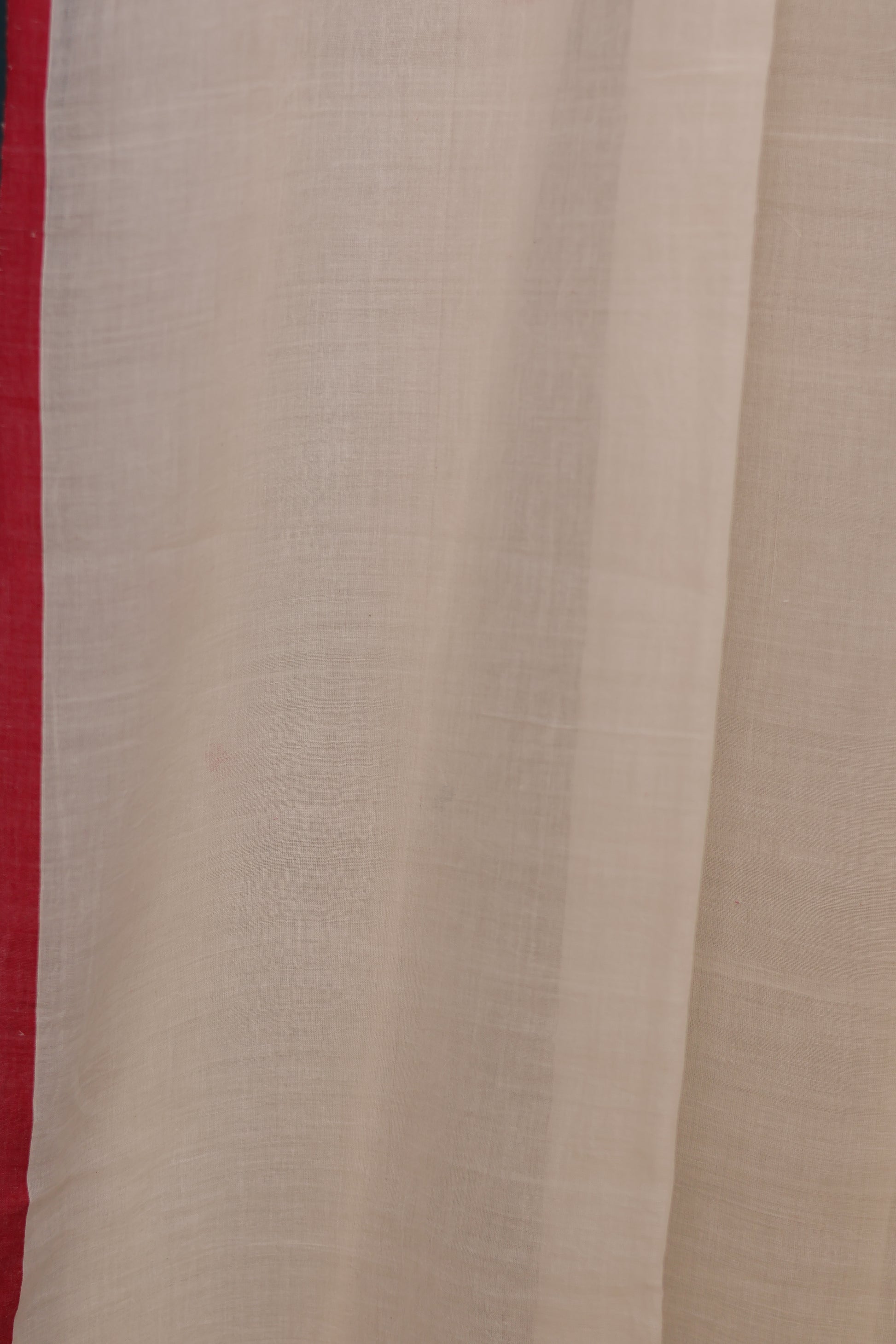 White & Red Pink Pure Handwoven Jamdhani Malai Cotton Saree