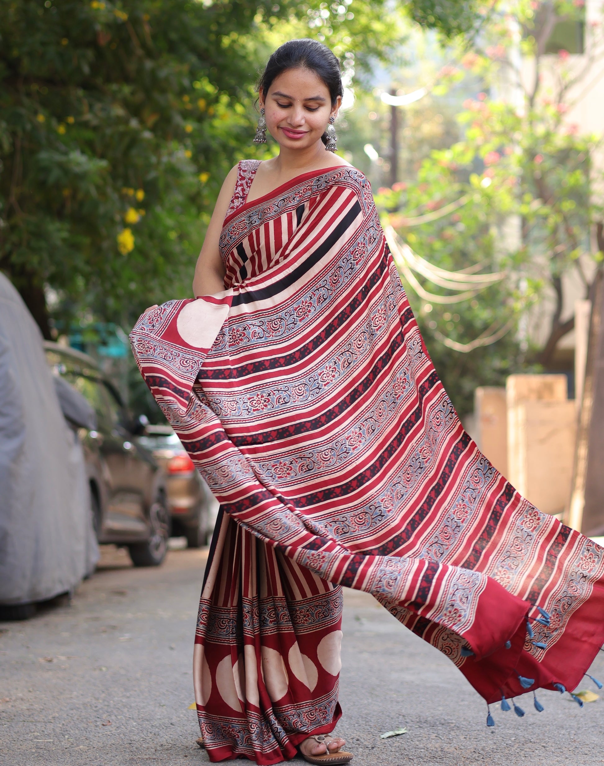 AUTHENTIC AJRAKH MODAL SILK SAREE