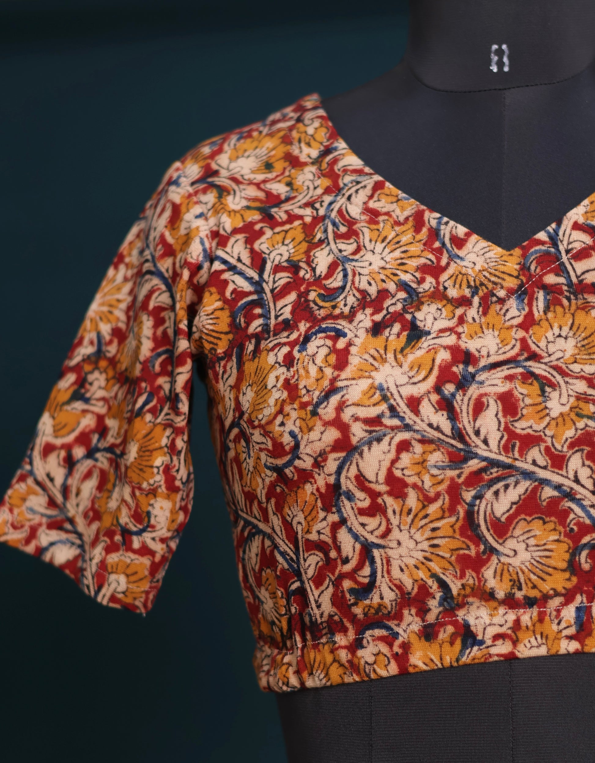Stretchable Hand Block Printed Kalamkari Blouses by Looms & Tassels | Natural Dyed | Skin-Friendly | Sizes 36-44